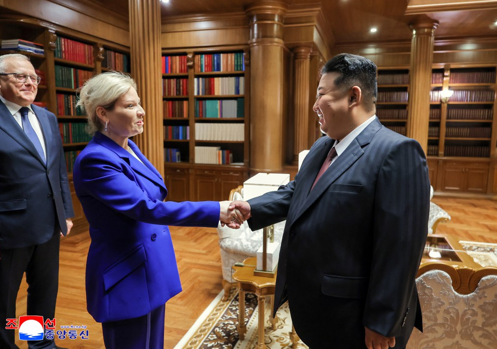 畫面顯示,金正恩神情凝重,與勞動黨副部長金與正、外務相崔善姬等人一起出席儀式。他緊抿雙唇,將雙手放在覆蓋有北韓國旗的棺槨上。大屏幕中緊接著出現了北韓與俄羅斯軍人在庫爾斯克戰場上的合影,以及疑似北韓士兵在前線書寫、沾有血跡的筆記本照片。筆記本上寫著:「戰鬥員同志們,決戰的時刻終於到來。我們懷著敬愛的最高司令官同志給予的如天般崇高的信任,將無所畏懼、英勇奮戰在這場神聖的戰鬥中……」畫面中,與金正恩一同出席儀式的相關人員均穿著冬季服裝。