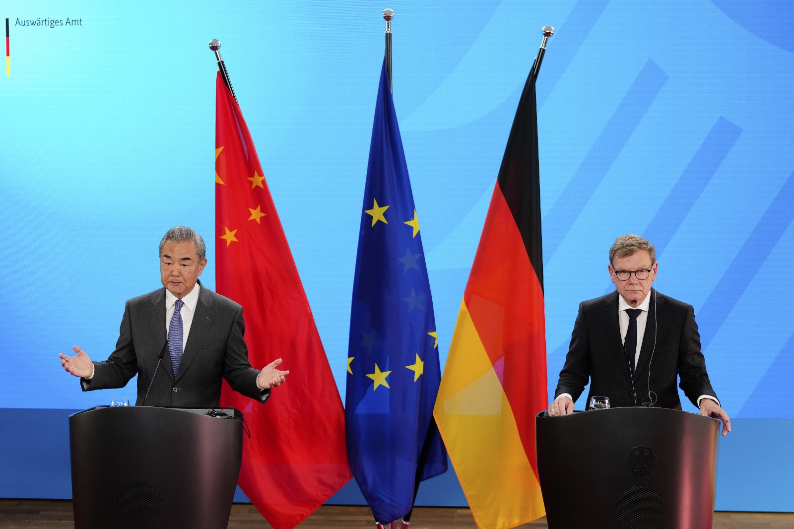 王毅在記者會上表示,現在有人試圖唱衰中歐關係,或者把具體問題擴大化,把經貿問題泛安全化,或者抱持對華偏見不放,把自已包裹在虛假信息的繭房中,但否認過去的成果就看不清未來的方向,不尊重前人的努力就是否定現在的自己。時代進步的潮流不可阻擋,中歐關係只會繼續前行,不會停滯,更不會倒退。中國對歐政策保持穩定性和連續性,中方支持歐洲一體化,支持歐洲戰略自主,支持歐洲成為多極格局中的重要一極。無論歐洲處於順境還是逆境,中國的政策從未改變。無論國際和歐洲形勢如何變化,中國的立場一以貫之。