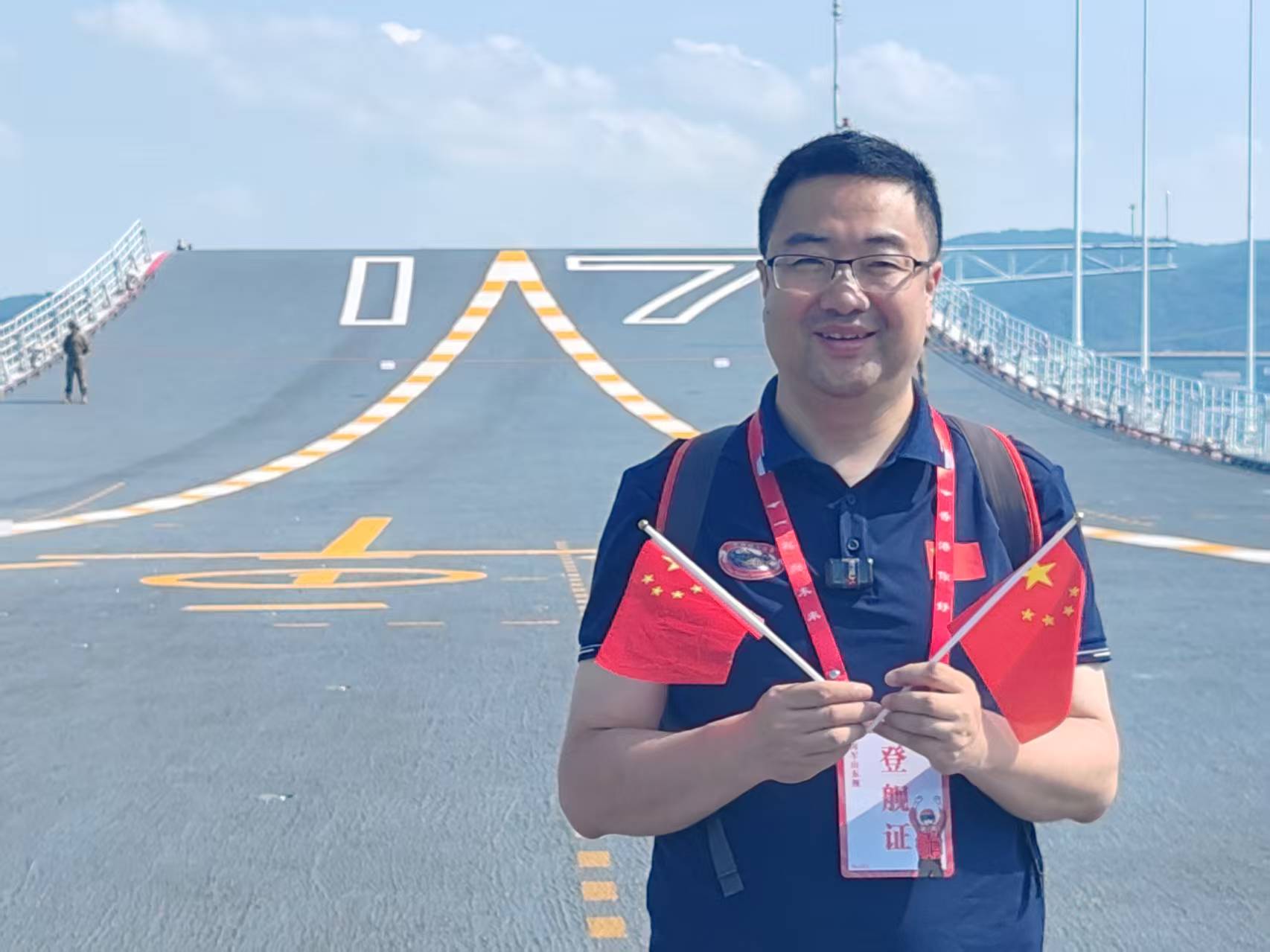 【橙訊】訪港的中國人民解放軍海軍航空母艦山東艦編隊昨日起一連兩日開放予市民參觀。尚海龍昨日作為首批登艦市民踏上山東艦甲板,他說,當戰機升降機緩緩升起,親見艦載機一刻,現場市民無不熱血沸騰,感慨甲板之遼闊。