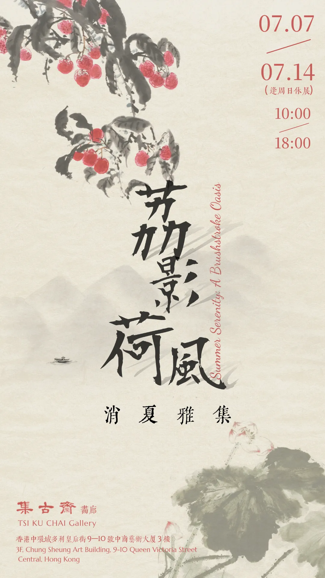 「荔影荷風——消夏雅集」展覽即日至2025年7月14日於集古齋畫廊舉行,展覽分「荔香千年」、「荷風夏韻」、「川行清涼」三個章節——以荔枝為主的蔬果清供小品、不同年代藝術家筆下的荷花百態,以及夏日川溪山澗間的清涼意趣。