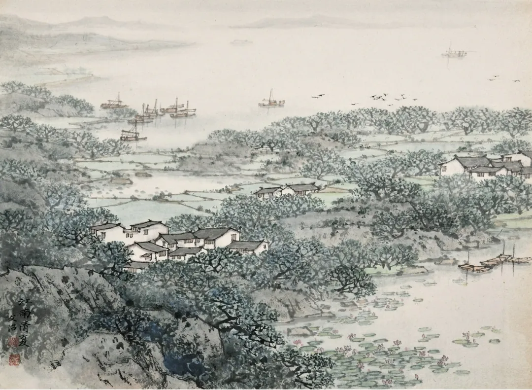 從「萬山煙靄」到「江南新綠」,古今畫家跨越時空的筆墨對話,共同譜寫「清涼」的主題變奏,當觀者駐足畫前,便能感受到山川跳動的涼脈,聽見千年文脈的清音。