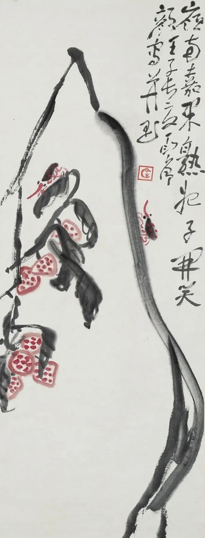 丁衍庸,《荔枝草蟲》,91 x 34.5 cm
