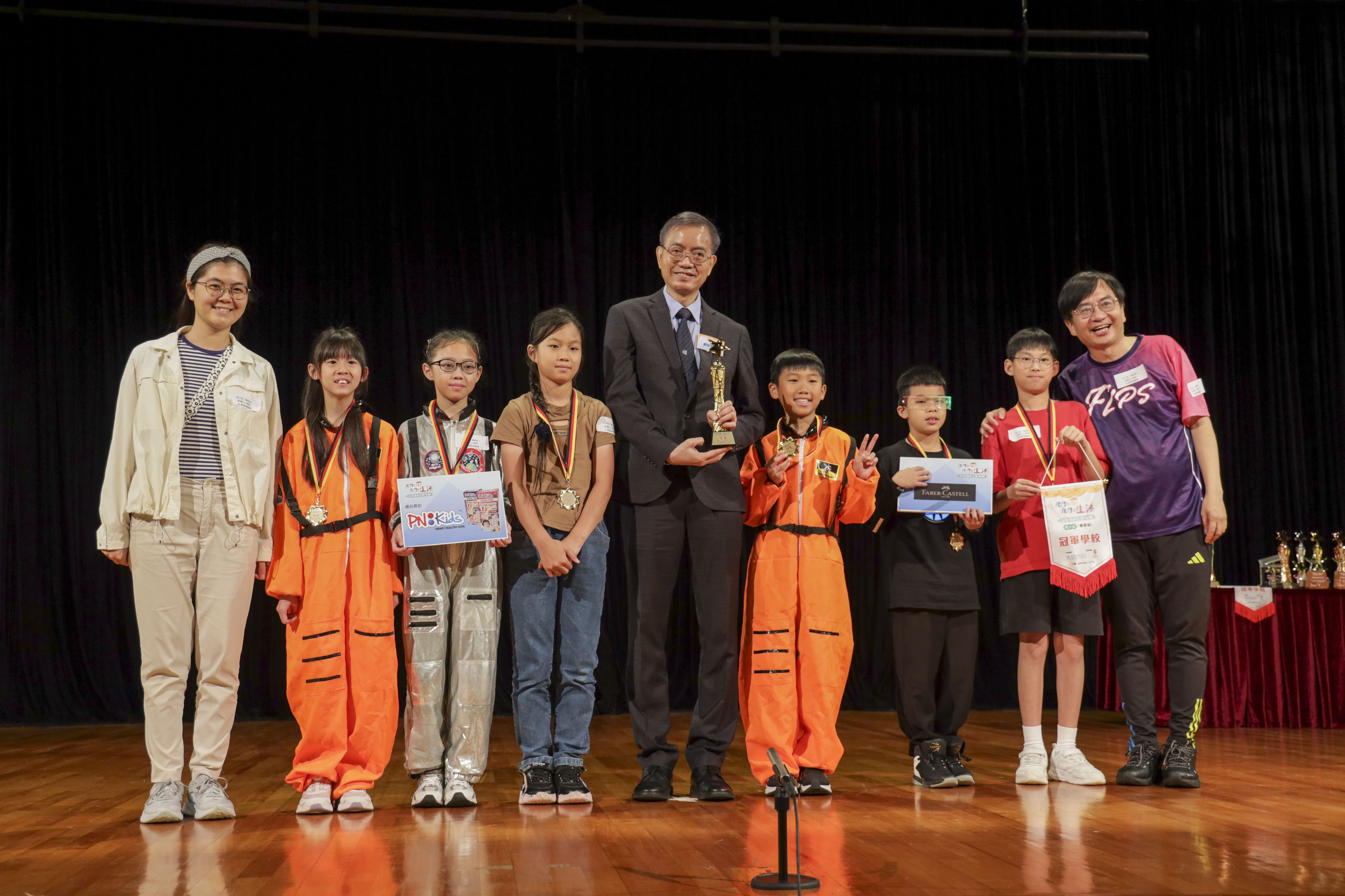 高小粵語組冠軍由粉嶺公立學校摘冠,作品《AI降臨喚醒愛》以新穎的AI題材融入家庭主題,探討科技與親情的交融,引人入勝。學生表示,比賽讓他們說話更清晰自信,通過排練熟悉陌生詞彙,語言運用更得心應手。教師表示,通過比賽打造沉浸式語文學習環境,讓學生在創作與表演中互相學習,通過語氣、動作將劇本演繹得生動傳神,深刻傳達「我們的家,我們的生活」的溫馨主題。