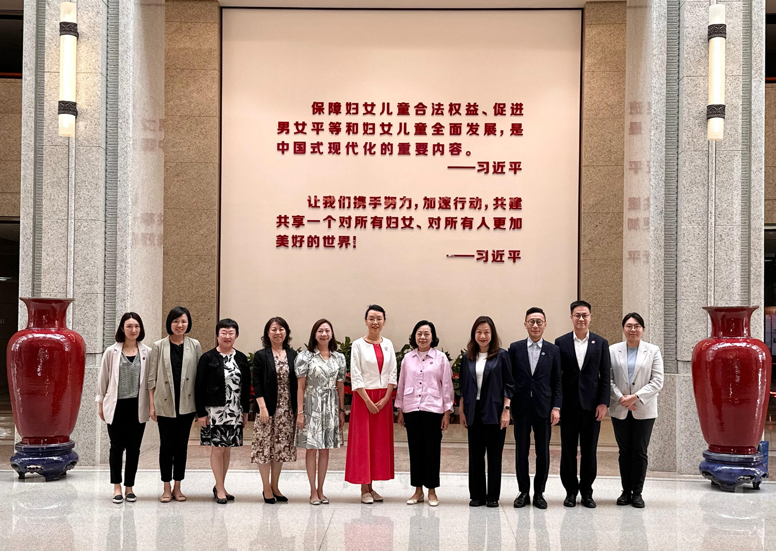 麥美娟(右五)與中華全國婦女聯合會副主席林怡(左六)會面。