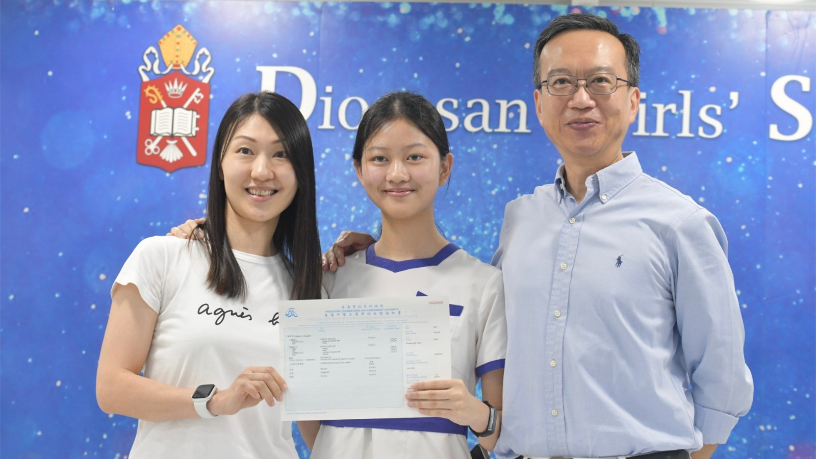 黃穎妍父親黃偉強(中)當年是會考10優狀元。