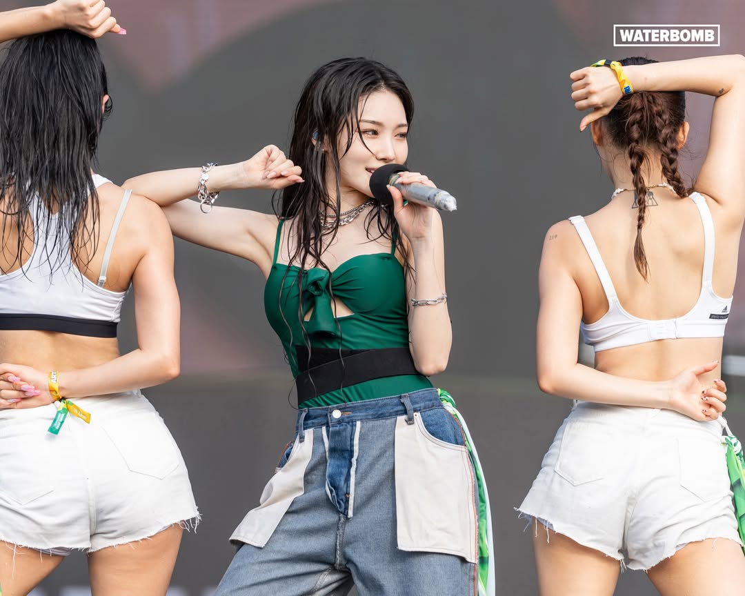aespa成員KARINA今年首度以個人身份登上WATERBOMB舞台,雖然服裝相對保守,但完美身材曲線依然藏不住。
