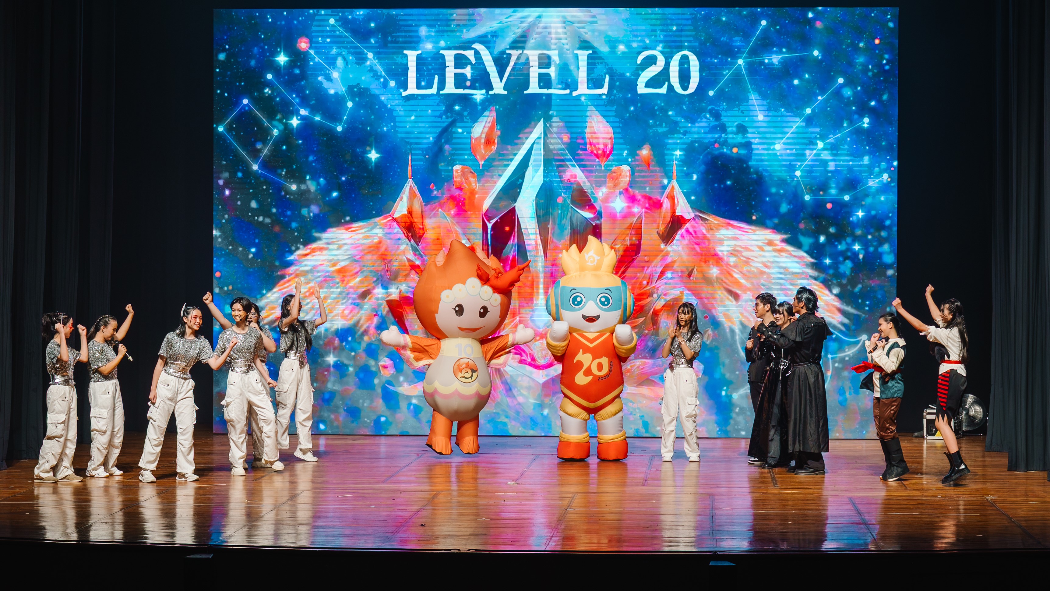 劇情中,「宇宙強盜」的闖入引發緊張對峙,而「時光回憶廊」環節則通過小學說唱、京劇、黃梅戲等傳統與現代融合的表演,回溯學校辦學歷程。初小合唱團的童聲、中小學中國舞的靈動、街舞與拉丁舞的力量,以及花式跳繩、跆拳道等體藝展示,格外引人矚目。此外,演員們以「鳳凰礦石」完成度從1級升至20級的劇情線,巧妙對應學校20年的成長軌跡。