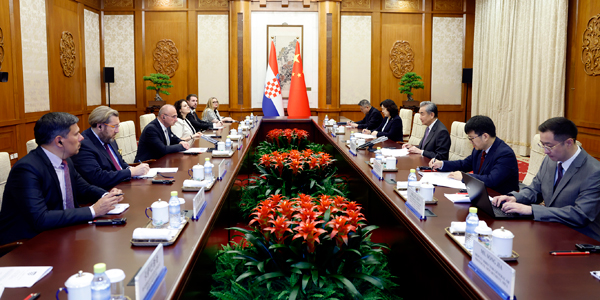 王毅說,克羅地亞是古絲綢之路的重要一站。中國是第一批同克羅地亞建交的國家,雙方始終相互尊重、平等相待、互利合作,以佩列沙茨大橋為代表的高質量共建「一帶一路」成果豐碩,推動雙邊關係更加成熟穩定,進入高水平發展新階段。今年是中國和克羅地亞建立全面合作夥伴關係20周年,雙方要以此為契機,本着開放、互利、共贏精神,總結經驗、謀劃未來,推動雙邊關係取得新進展、邁上新台階。雙方要加強各層級交往,增進相互了解和互信,繼續堅定相互尊重、相互支持,加強「一帶一路」倡議同克發展戰略對接,深化各領域交流合作。中國—中東歐國家合作是中歐關係的重要組成部分,中方願繼續本着開放、透明、互利原則同克方加強合作。在當前變亂交織的國際形勢下,聯合國作用只能加強不能削弱,雙方要加強多邊協調配合,堅持多邊主義和自由貿易,共同應對全球性挑戰。
