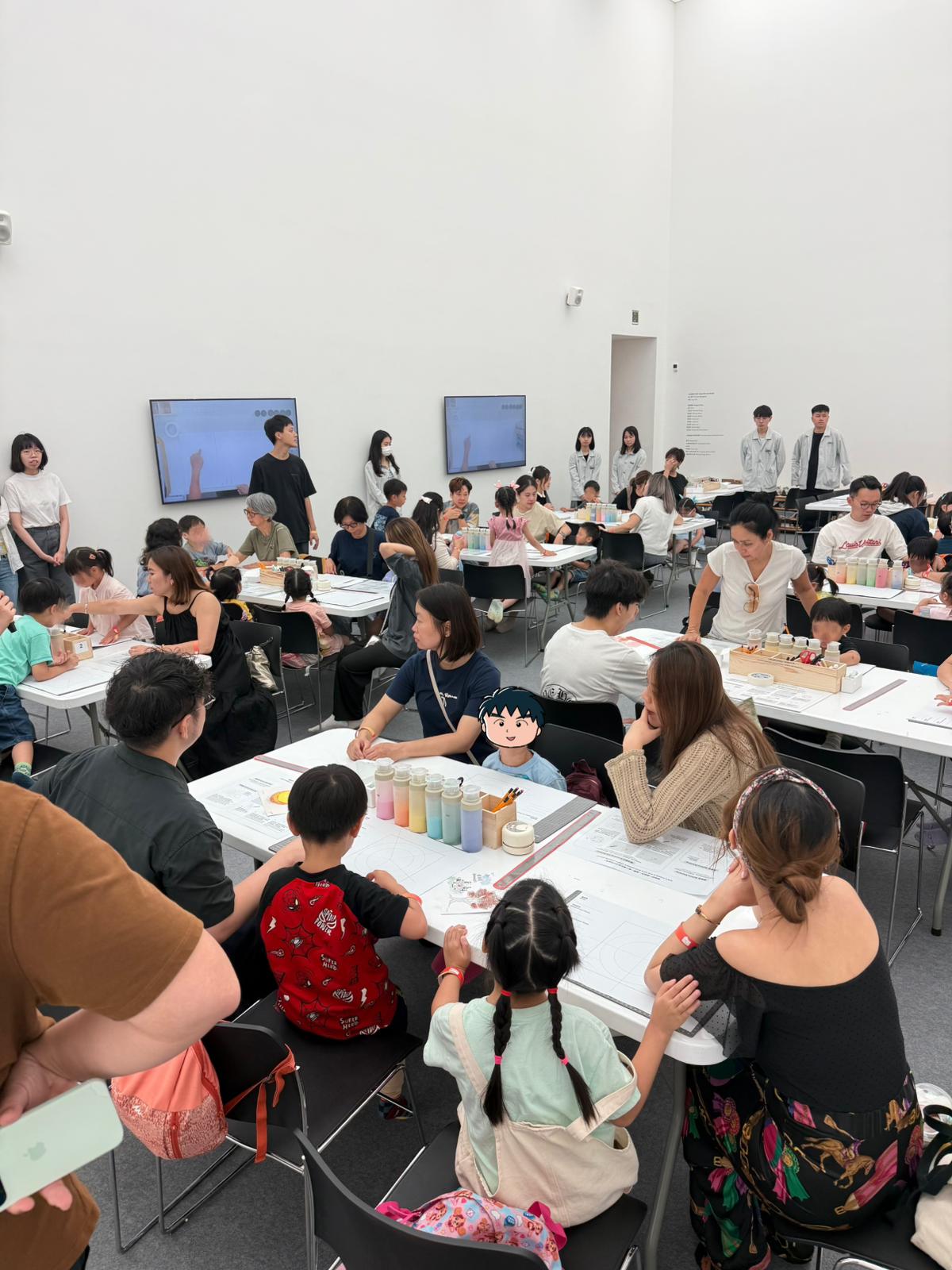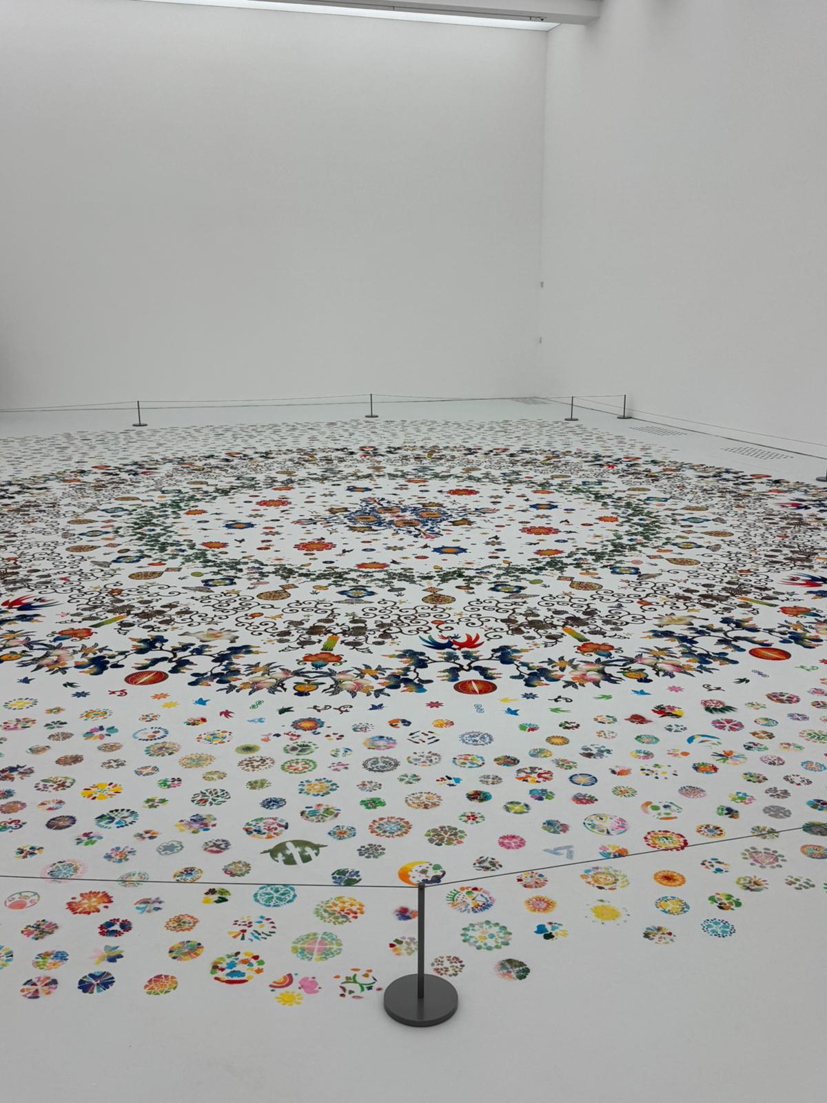 「開箱2025:光之合奏」現場邀請觀眾參與大卷伸嗣專為大館空間創作的參與式藝術《光之合奏》的共同創作,突破傳統藝術體驗。參與活動的觀眾與孩童們運用彩沙物料,自由的創作承載著各自獨特故事的花卉紋樣,共同繪製出一個「不斷生長」的共享空間。拾壹慈善基金會義工團及保良局工作人員共30人全程協作,引導孩童以色彩與圖案詮釋記憶中的光影,最終作品將與不同界別參與者的創作交織,象徵多元文化交融與社會的共融。