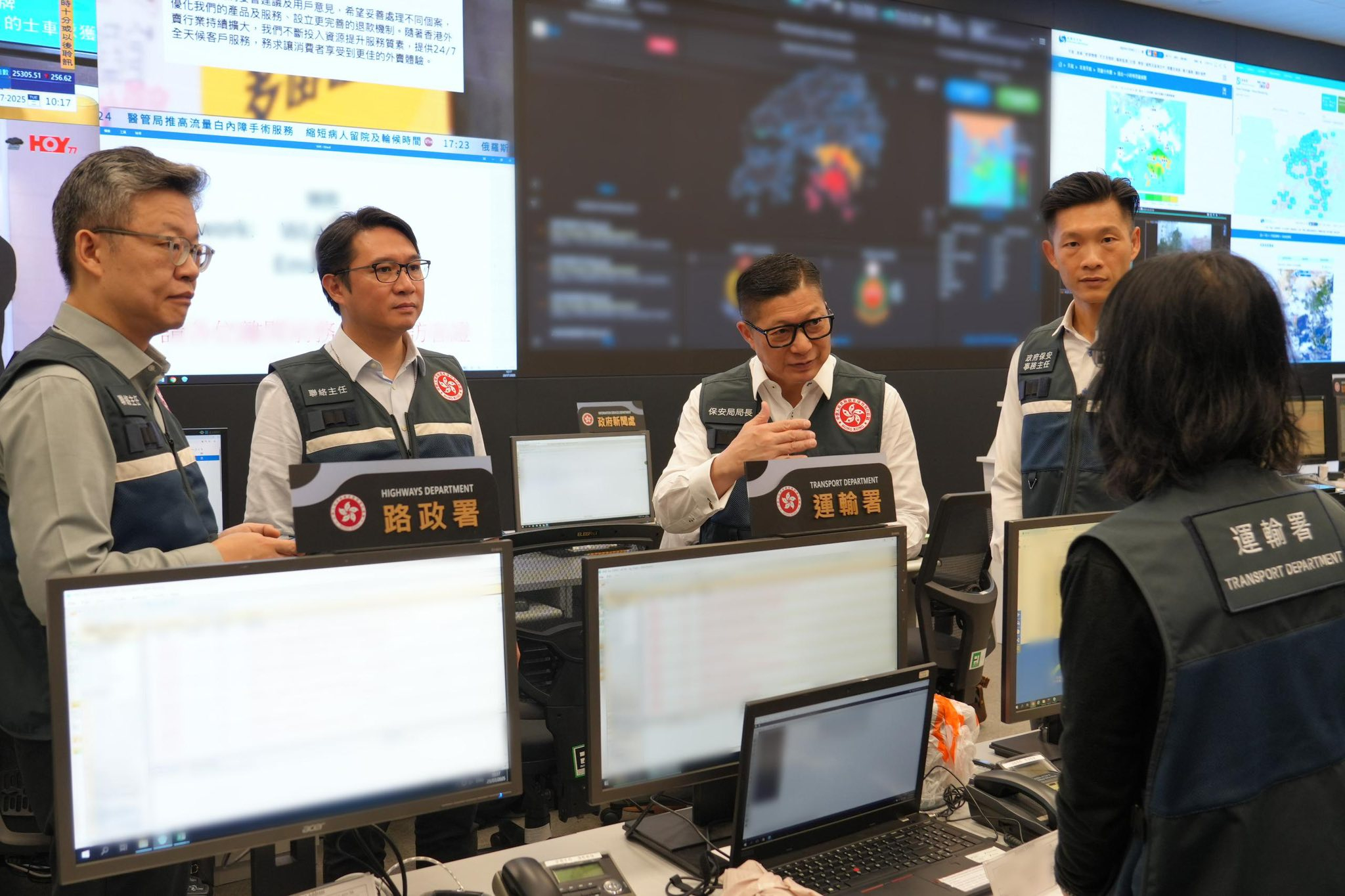 鄧炳強感謝各部門同事快速應變,全力應對極端天氣。他亦提醒市民留意最新天氣消息,注意安全。