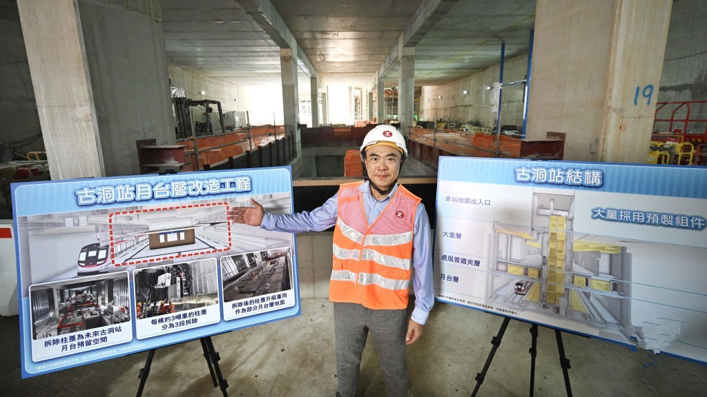 古洞站月台改造工程,預計今年底前平頂,2027年完工。