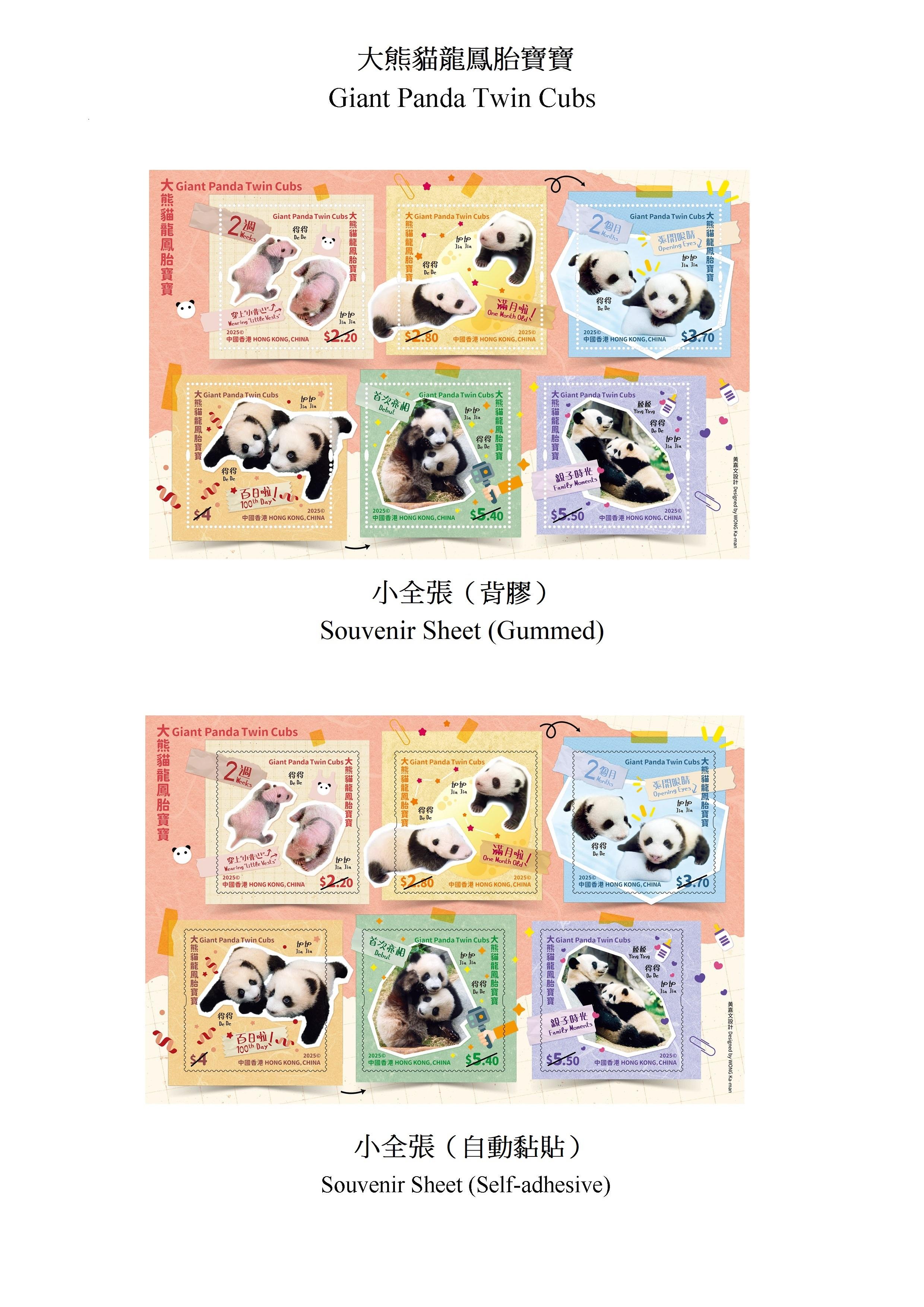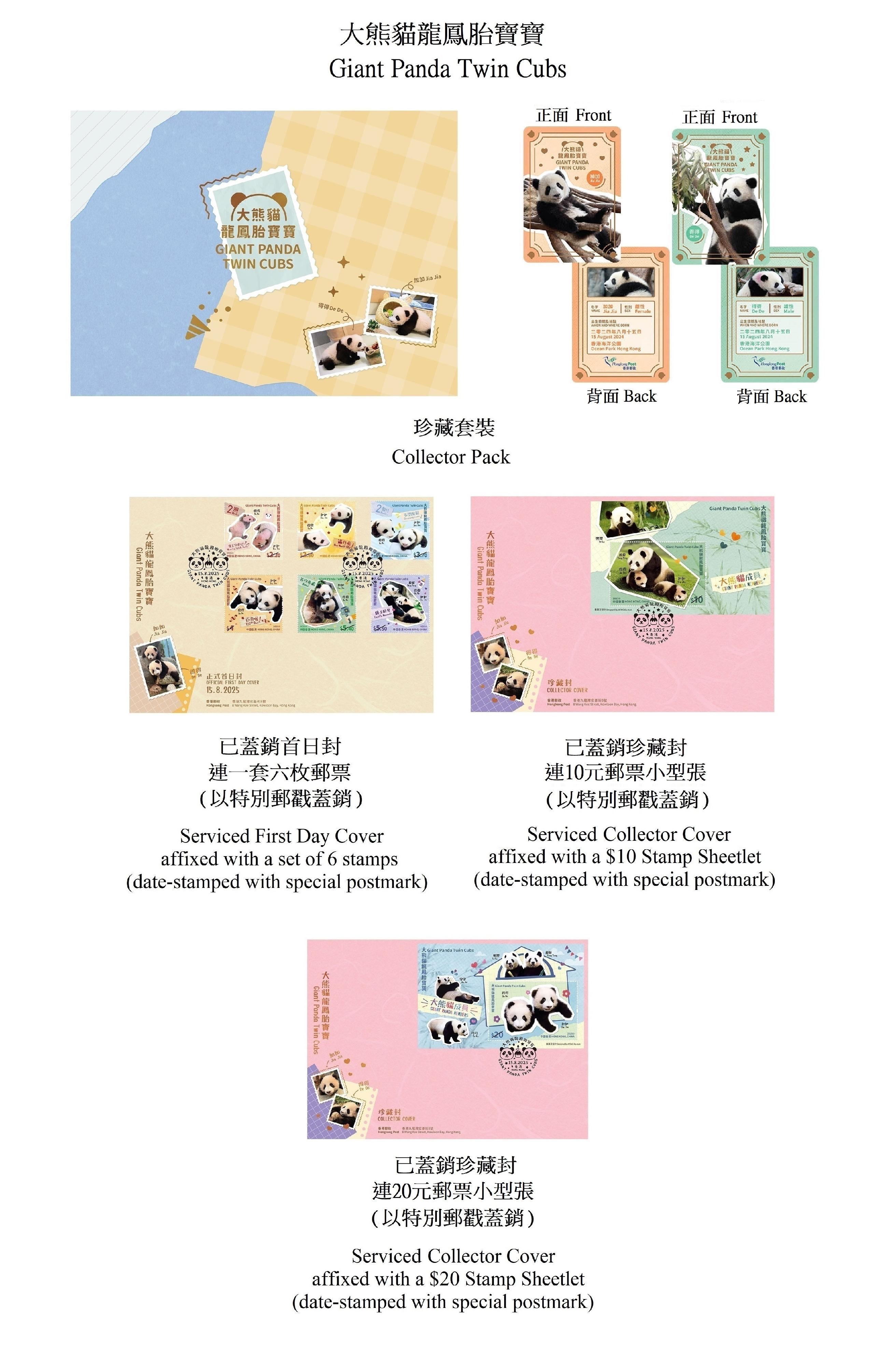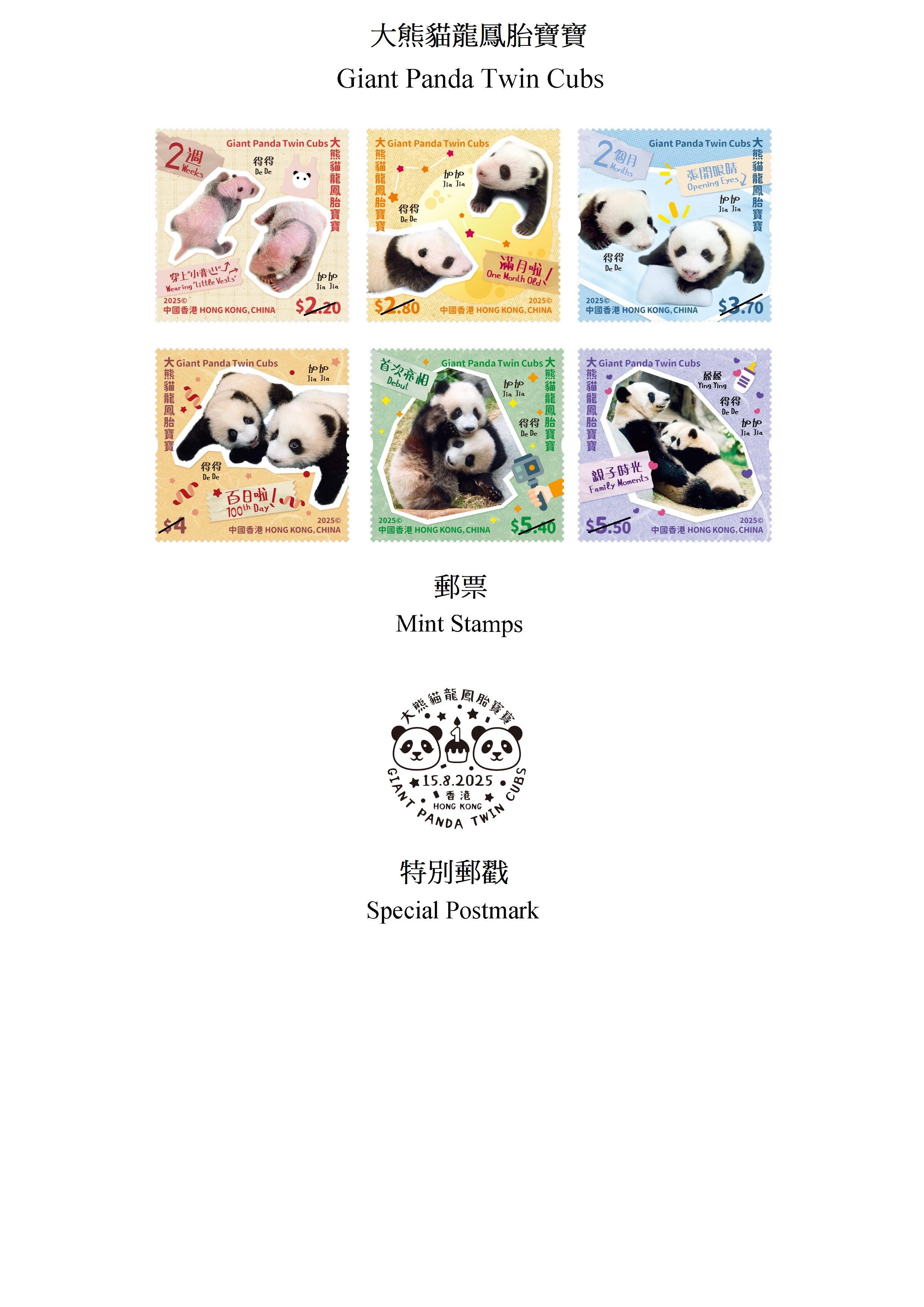 【橙訊】香港郵政今日(31日)宣布,以「大熊貓龍鳳胎寶寶」為題的特別郵票及相關郵品將於8月15日推出發售。