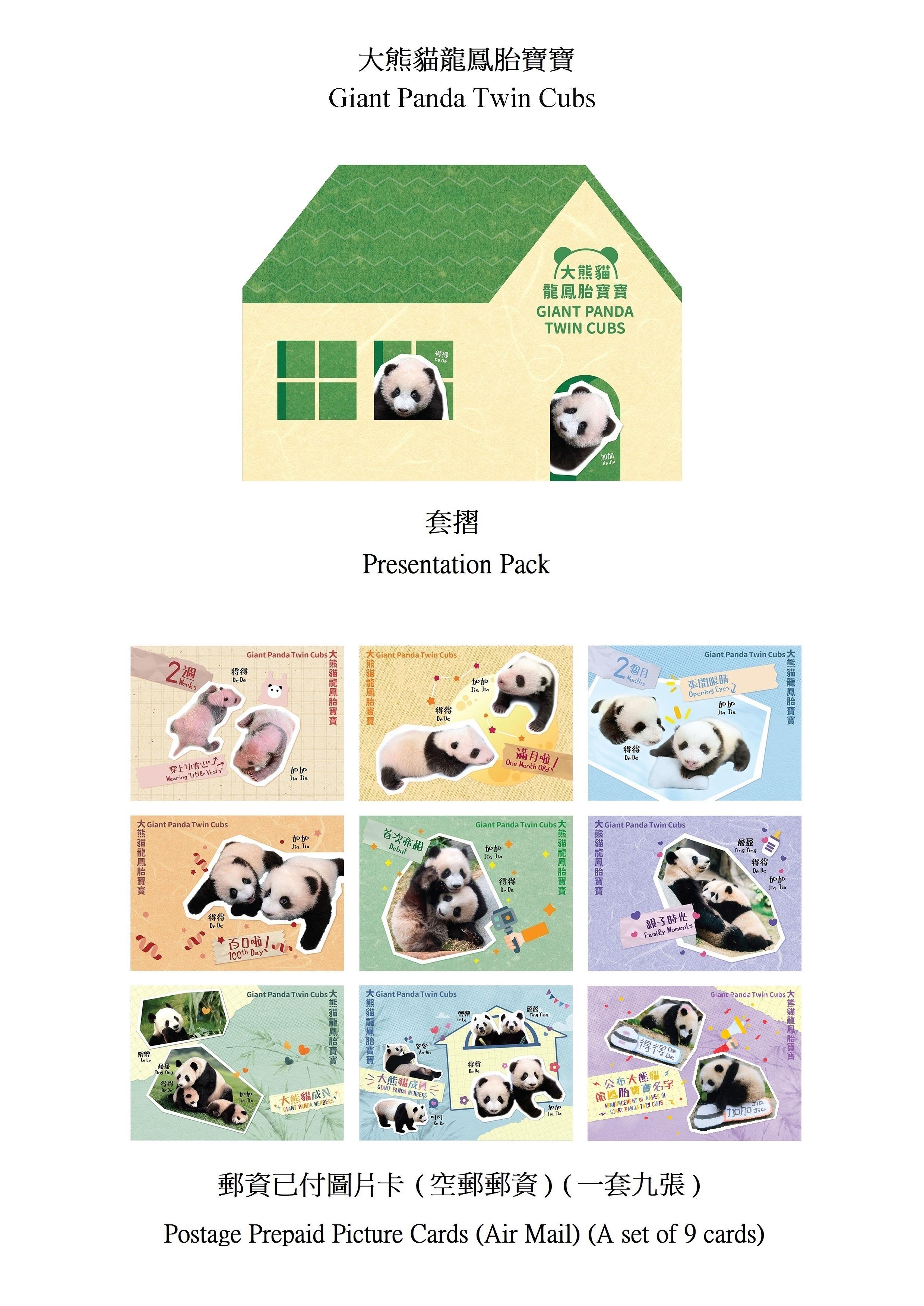 早前龍鳳胎寶寶獲官方命名為「加加」(家姐)及「得得」(細佬)。香港郵政將以「大熊貓龍鳳胎寶寶」為題發行一套六枚郵票、兩款郵票小型張及相關郵品,展示大熊貓寶寶在不同階段的生活點滴,見證牠們的成長旅程。