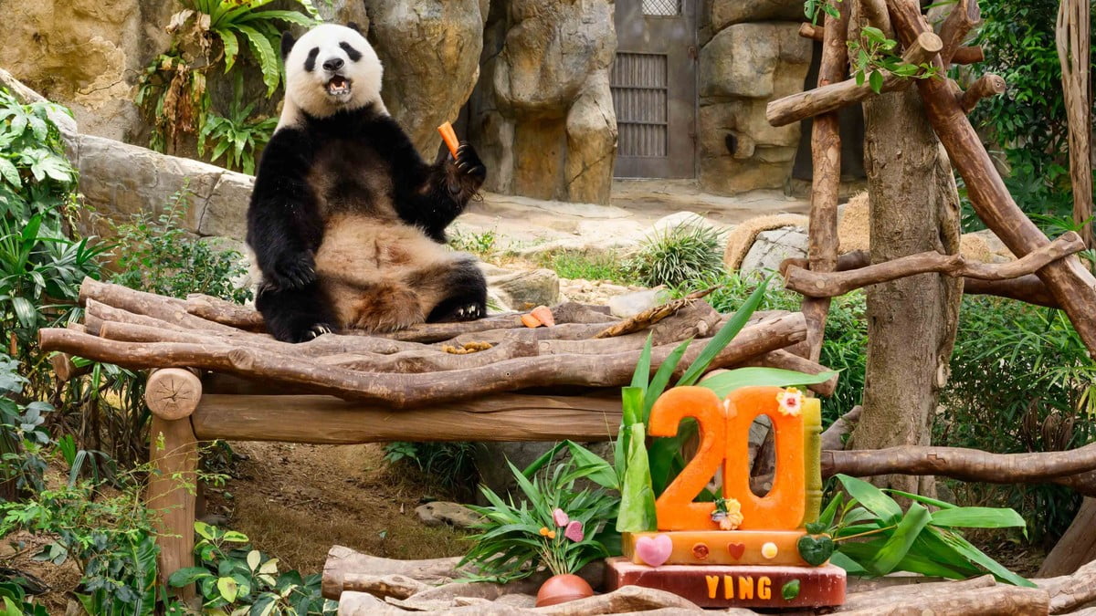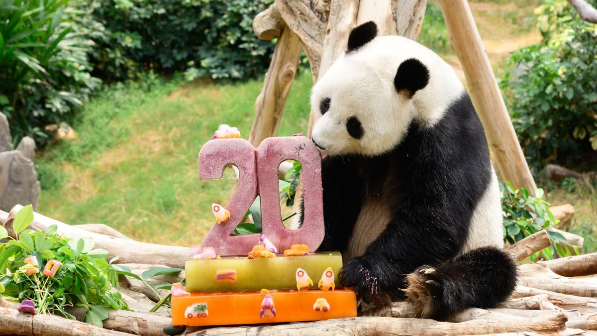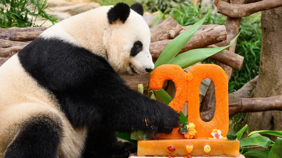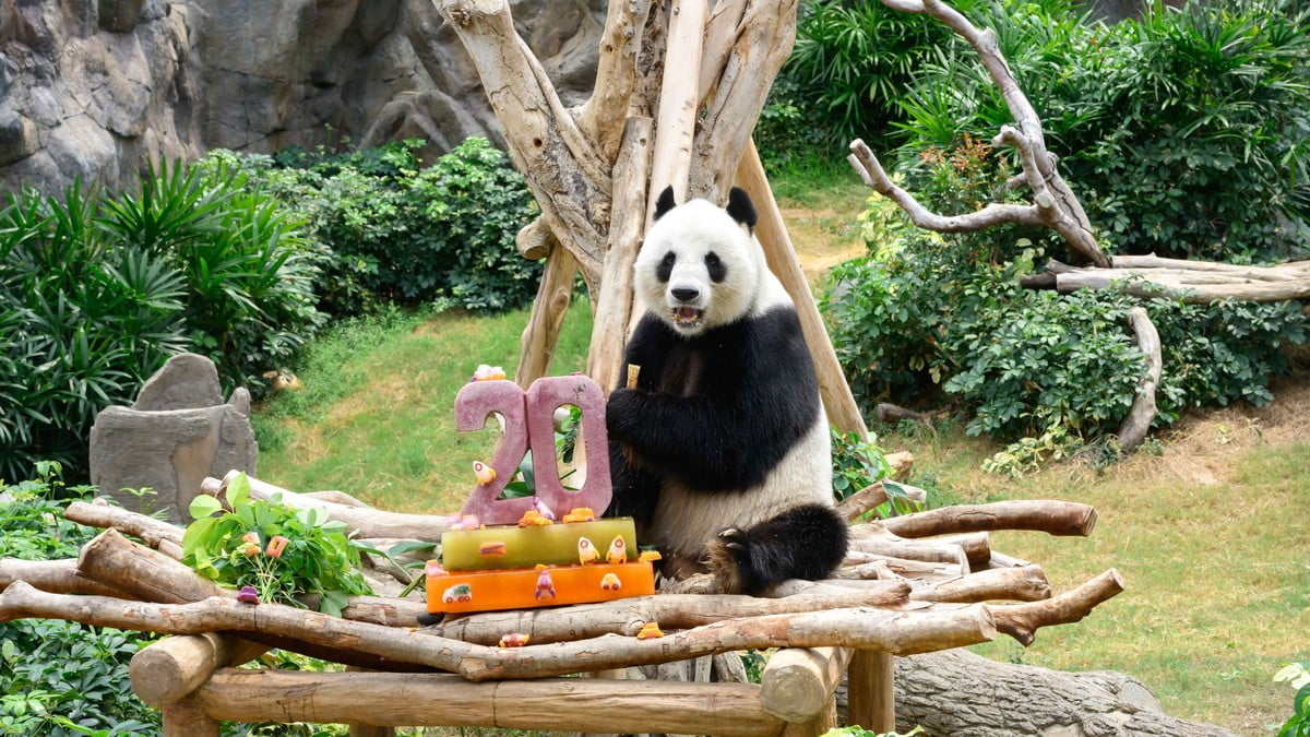 【橙訊】海洋公園大熊貓盈盈和樂樂,本月迎來20歲生日,園方為牠們準備冰蛋糕慶祝。海洋公園說,盈盈和樂樂的長壽與活力,充分印證兩隻大熊貓得到精心照料和卓越獸醫護理,以及園方對大熊貓保育及教育的堅定承諾。