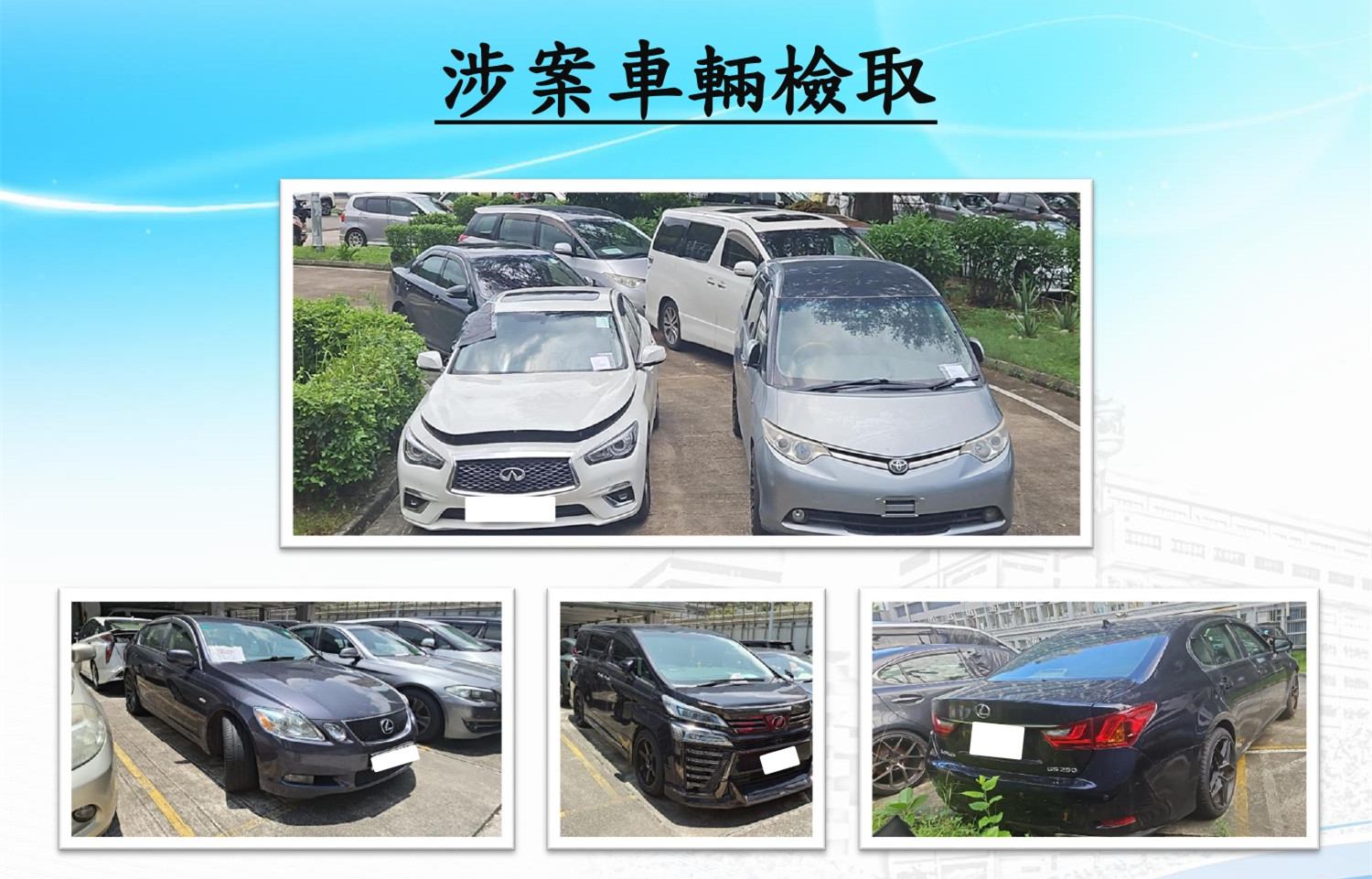 其後警方根據該四間公司所登記的59部車輛的背景,以及接洽運輸署對該59部車輛的牌照申請資料作深入調查,結果共鎖定31名目標人士,包括兩名負責開設空殼公司並處理車輛牌照續期的骨幹成員、3名負責為車輛承租泊車位的租客以及26名曾經駕駛過上述車輛的司機。