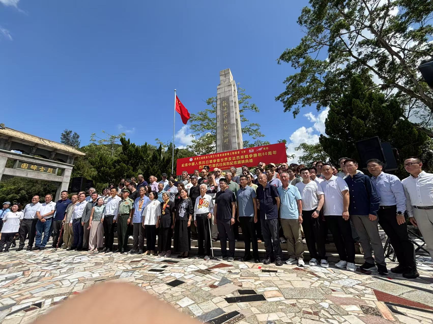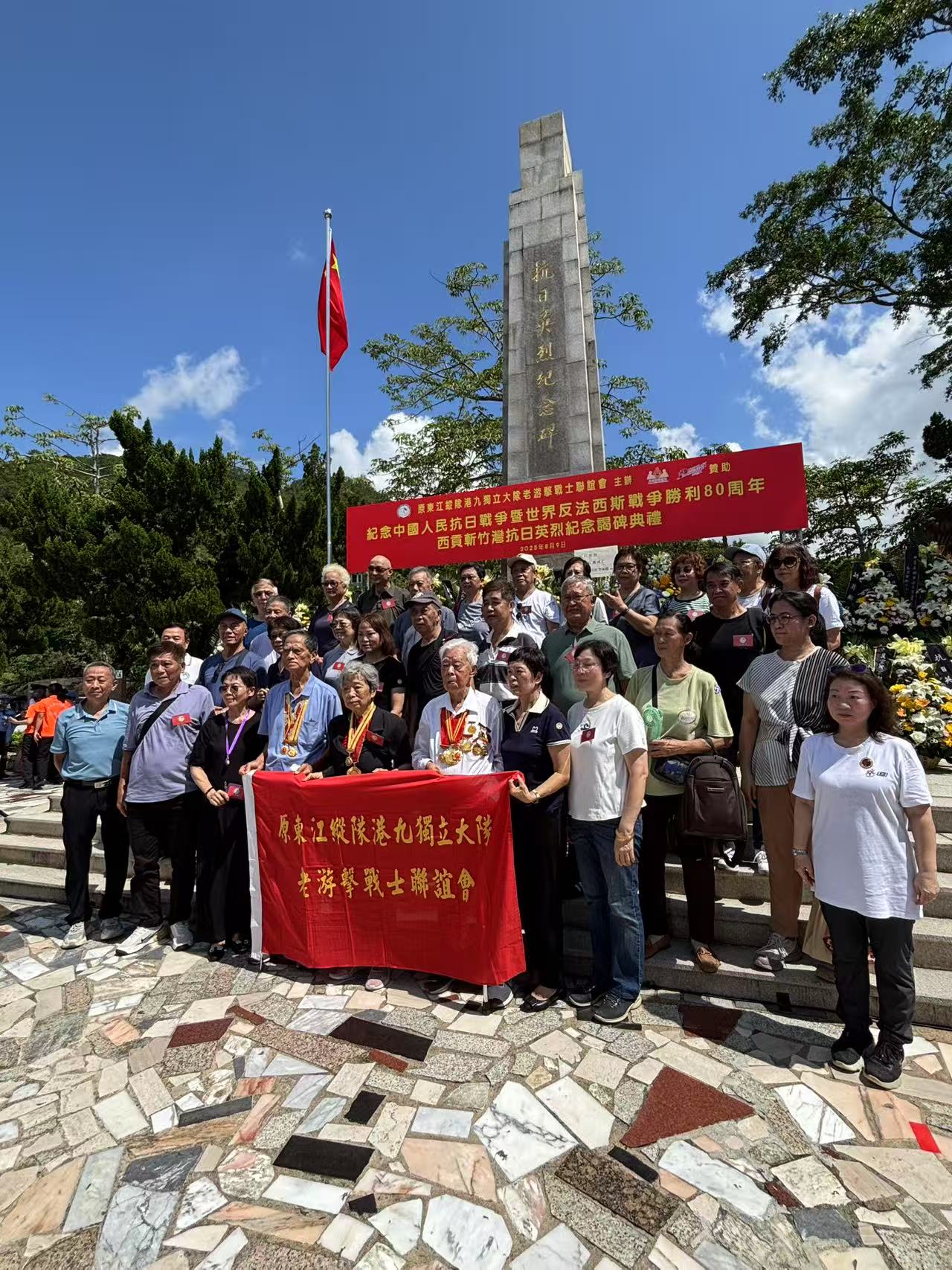 【橙訊】今年是抗戰勝利80周年,「西貢斬竹灣抗日英烈紀念碑謁碑典禮」今日(周六)上午10時在斬竹灣烈士碑園舉行,東江縱隊港九大隊老戰士、中央政府駐港機構代表、駐港部隊代表以及民政及青年事務局局長麥美娟、文化體育及旅遊局局長羅淑佩等人出席儀式。
