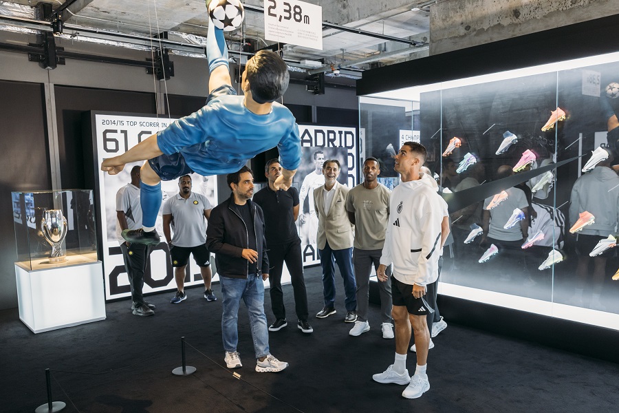 C朗一身運動裝束,上身穿著長袖衛衣,下身則是短褲配波鞋。在團隊工作人員及保安陪同下,他進入展覽館參觀約10分鐘,體驗這個以其非凡足球旅程為主題的展覽空間,細心欣賞展館內的各項細節,為展覽注入熾熱氣氛。