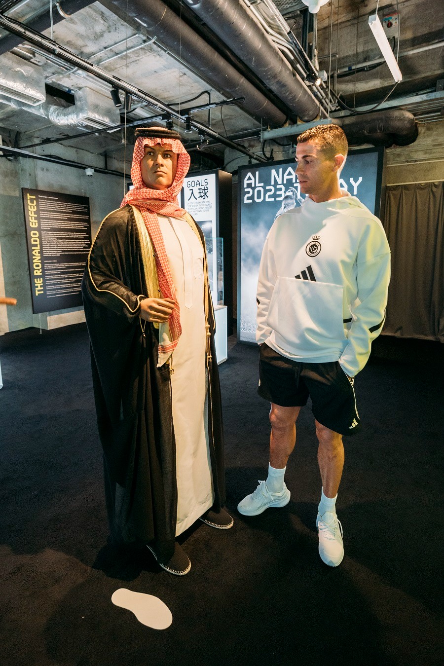 C朗與前隊友兼好友、Al Nassr CEO José Semedo、Al Nassr Sporting Director Simão Coutinho及CR7 Family Office團隊(Luis Parafita、Tomás Froes)一同參觀展館。眾人對館內各個展區表現興奮,C朗拿度更與自己的蠟像互動,並親身體驗場內多項互動體驗,包括複製並重現他在里斯本的第一個房間以及其YouTube頻道《UR Cristiano》的錄影室。