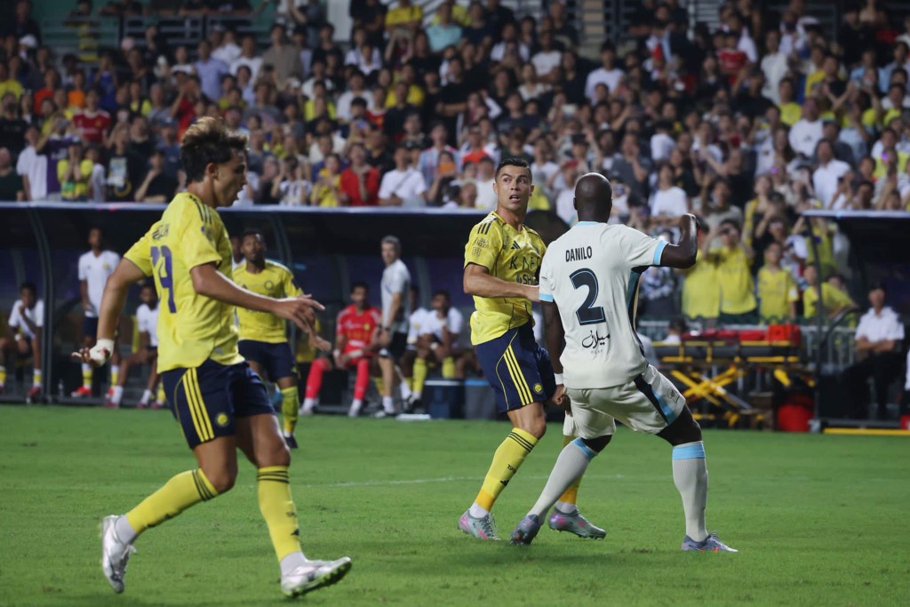 【橙訊】沙特超級盃首場4強賽事,晚上在香港大球場上演,由C朗拿度掛帥的艾納斯,對陣由前皇馬球星賓施馬領軍的伊蒂哈德,大會宣布,賽事入場人數有30653人。艾納斯最終以2:1淘汰伊蒂哈德,率先晉身周六的決賽。