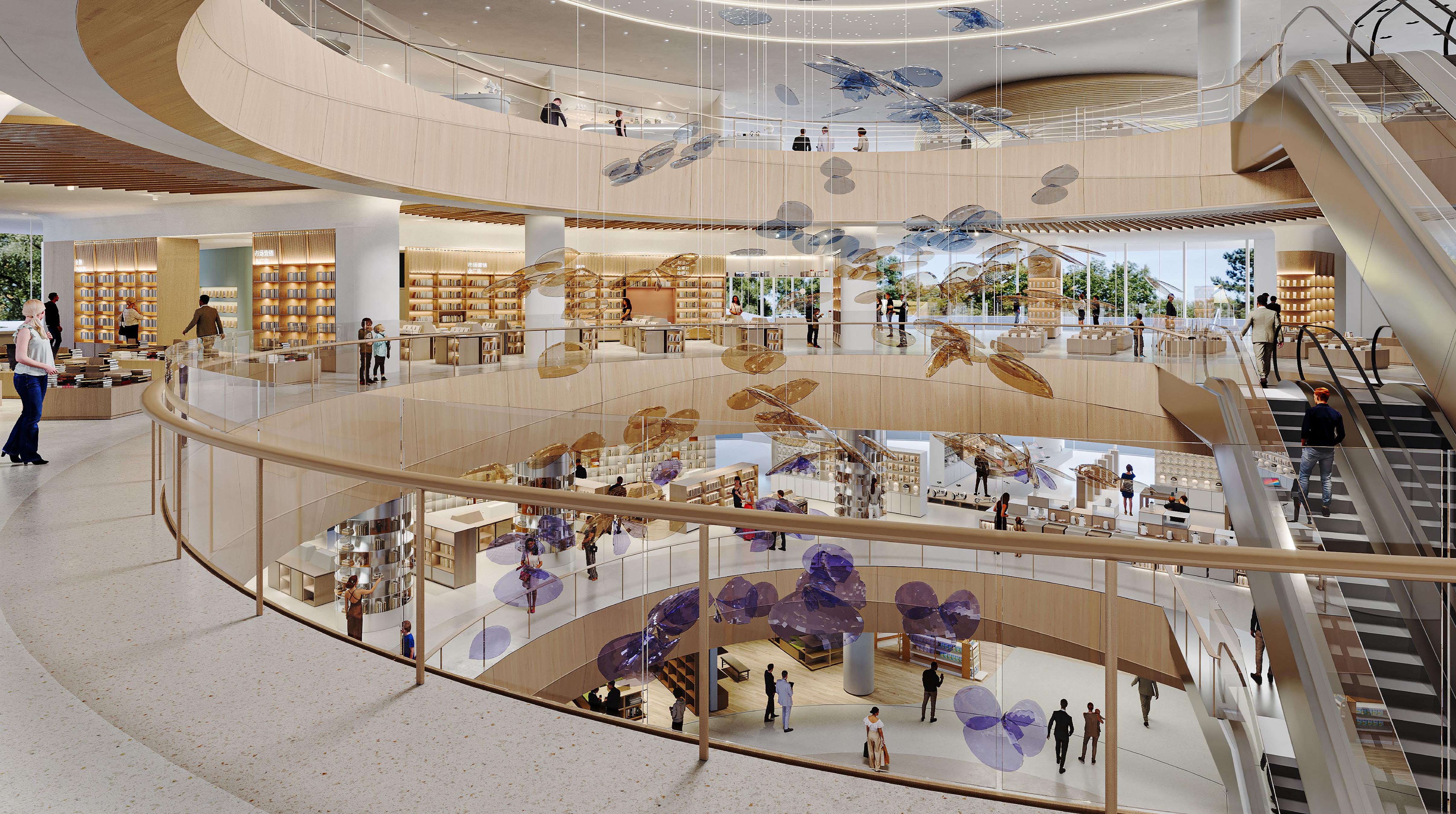 「灣區之眼」亦將以商業集群與智慧運營融文化、消費、科技於一體。包括人工智能體驗館、科技沉浸式體驗空間、餐飲品牌文化主題限定店在內的特色商鋪、主題門店將為文化發展注入創新動力。大數據、人工智能技術融於書城服務中,將大大提升遊客休閒質量,