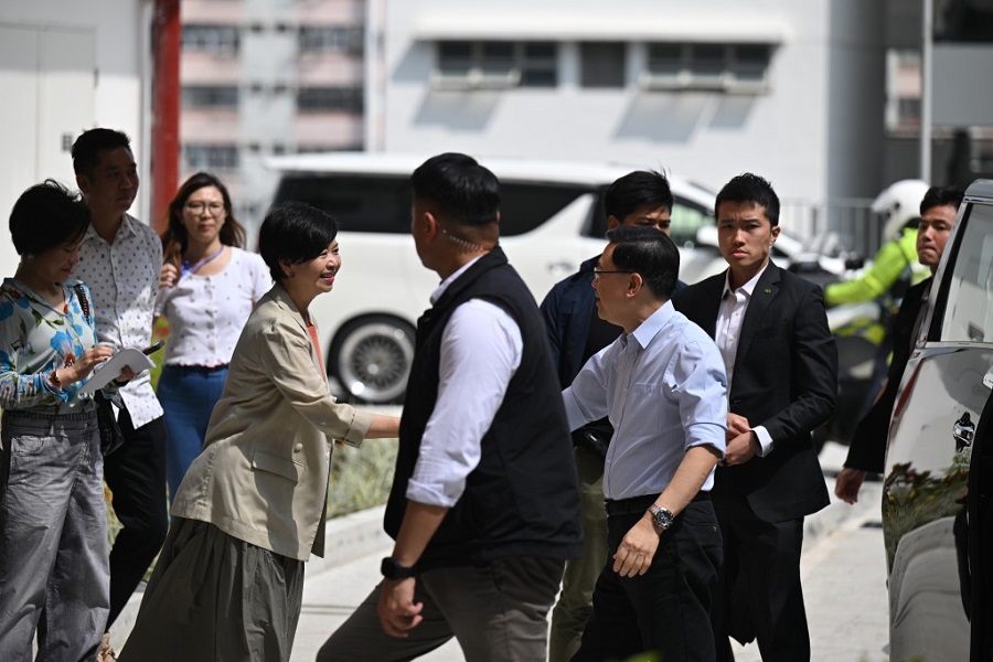 何永賢及房屋署署長李佩詩在場迎接,並陪同李家超上樓。