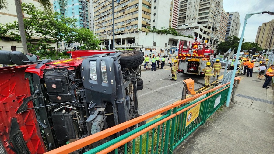 警方下午大約3時半接報,一輛消防車在屯門鳴琴路、石排輕鐵站外與私家車相撞,消防車翻側。涉事私家車車頭蓋飛脫、玻璃窗碎裂。