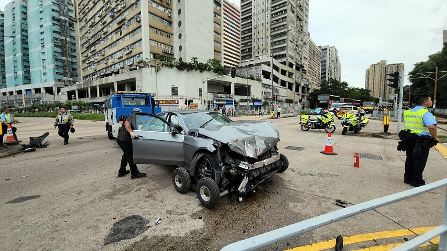 車禍釀成7人受傷,包括5名消防員、私家車男司機及男乘客,他們均告輕傷。