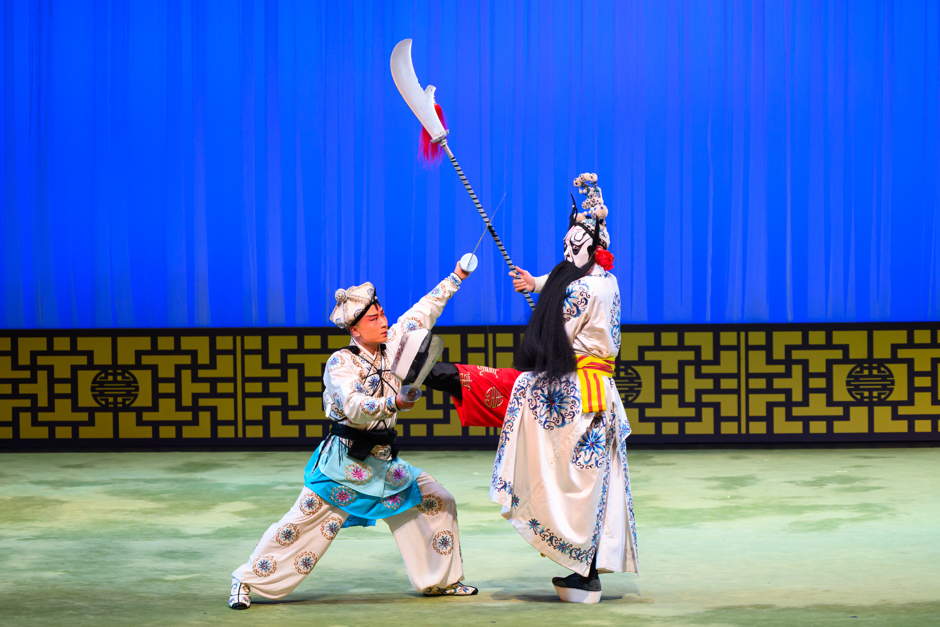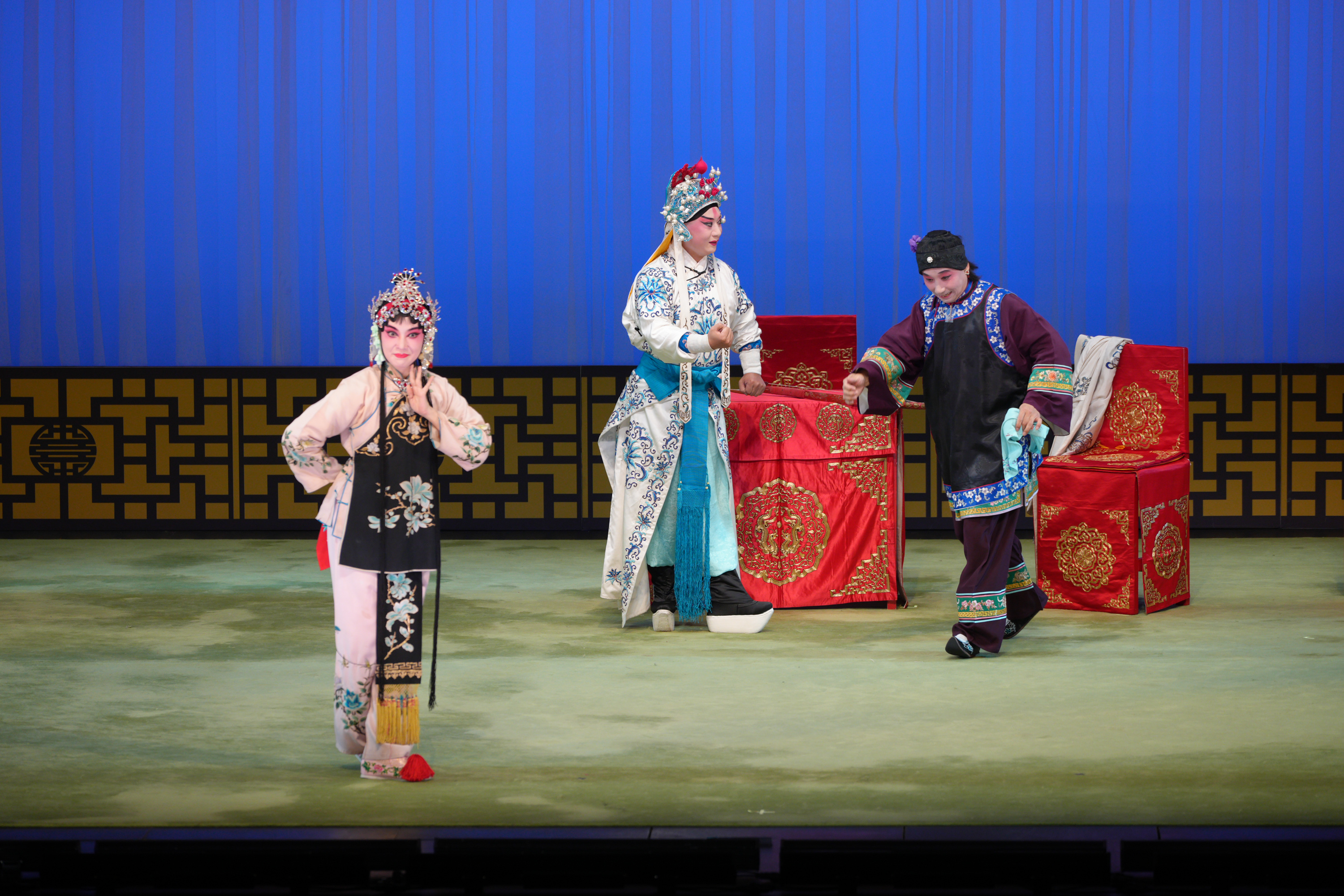 8月23日的表演同樣精彩不斷。京劇《鐵弓緣.茶館》率先登場,張靜文飾演的陳秀英嬌俏可人,與潘德堯飾演的匡忠因「鐵弓」結緣、一見鍾情的橋段充滿喜感。秦光榮飾演的陳母痛斥惡少石文(劉桂華飾)的情節妙趣橫生,引得觀眾笑聲連連。