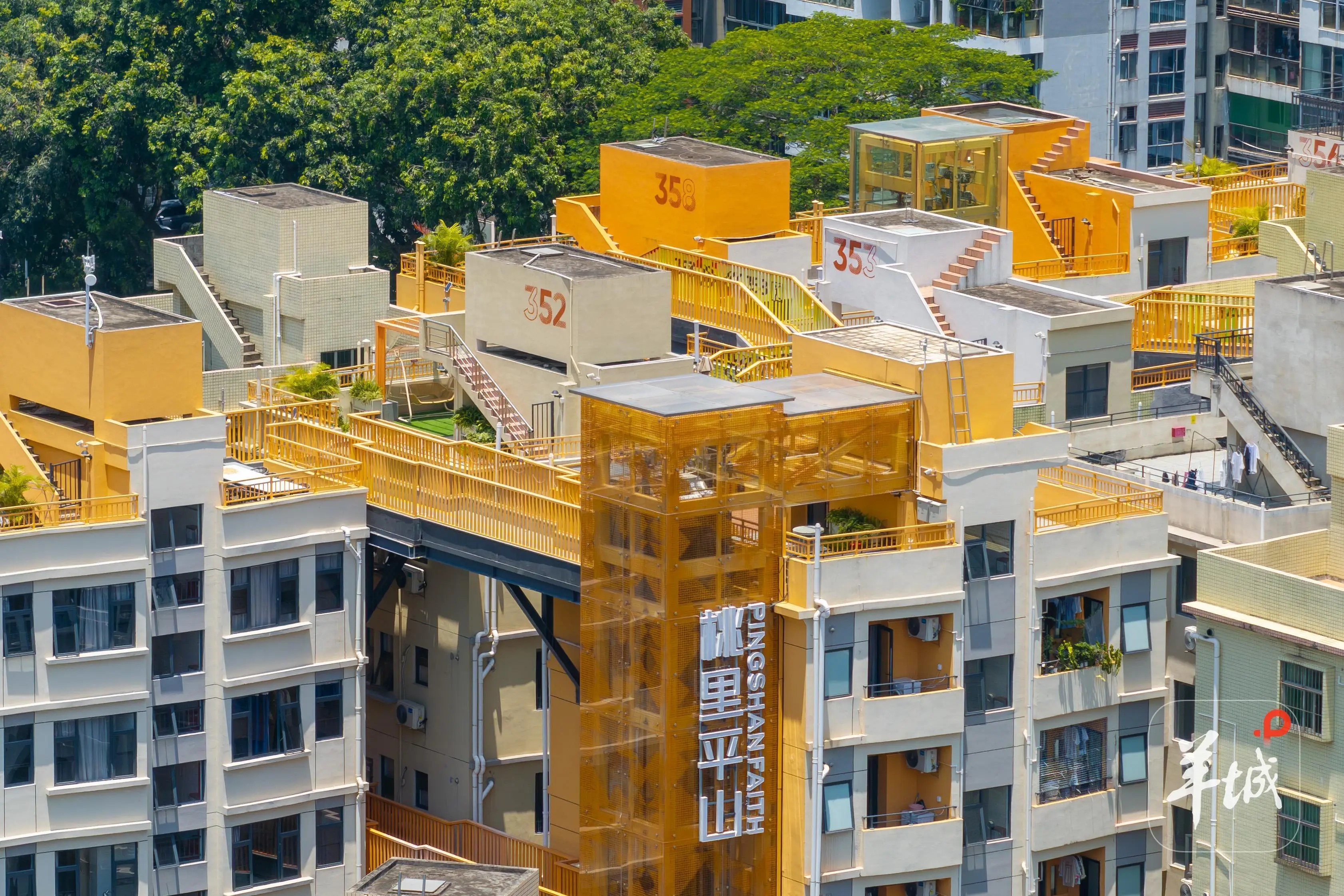 平山村中的建築經過整修,改造成為「鄰里新巢」及公寓等,重新煥發活力