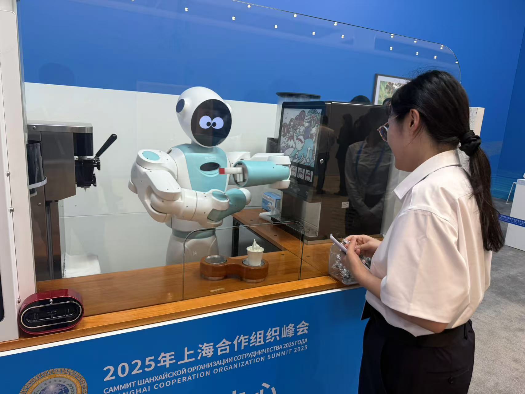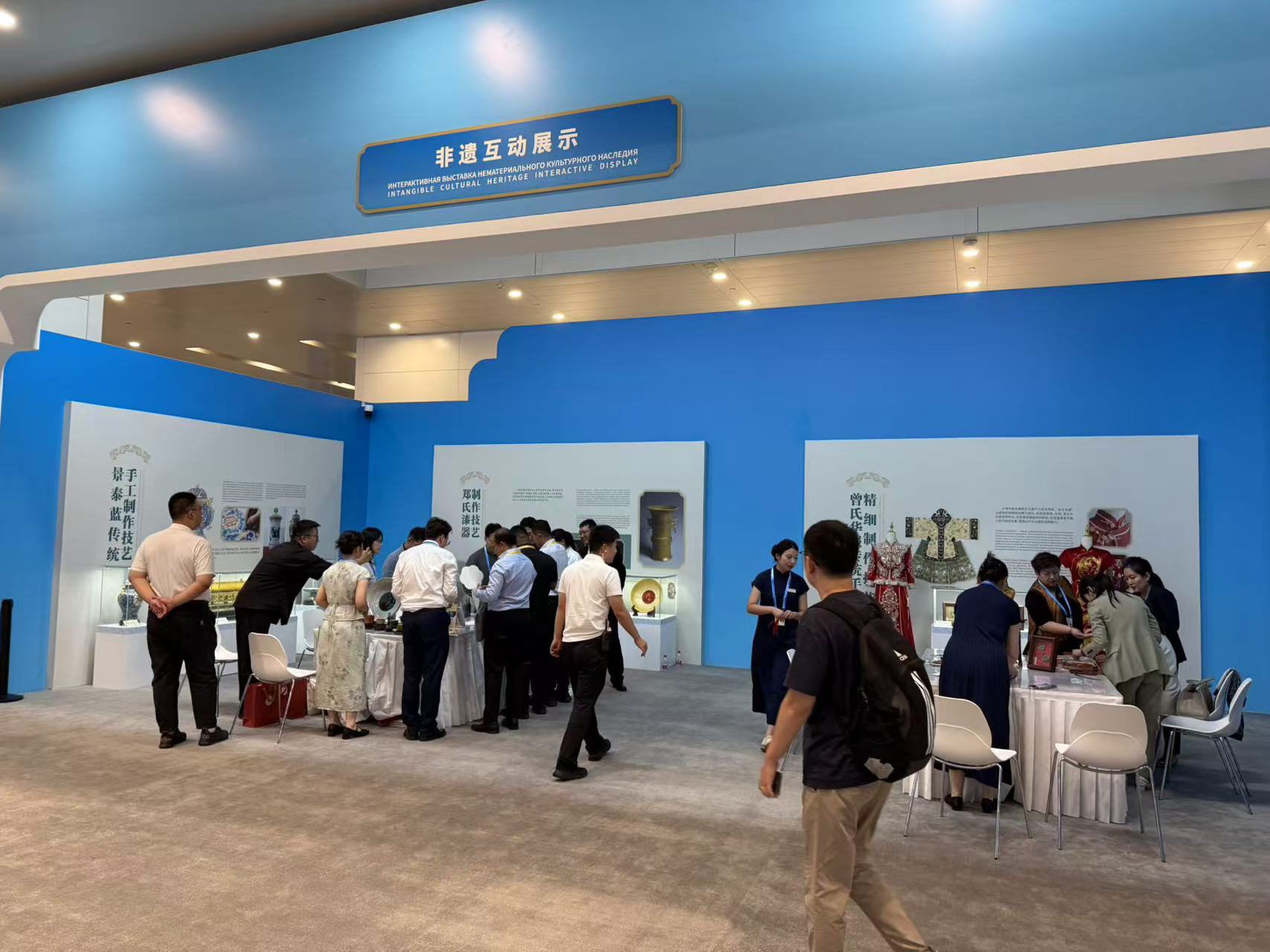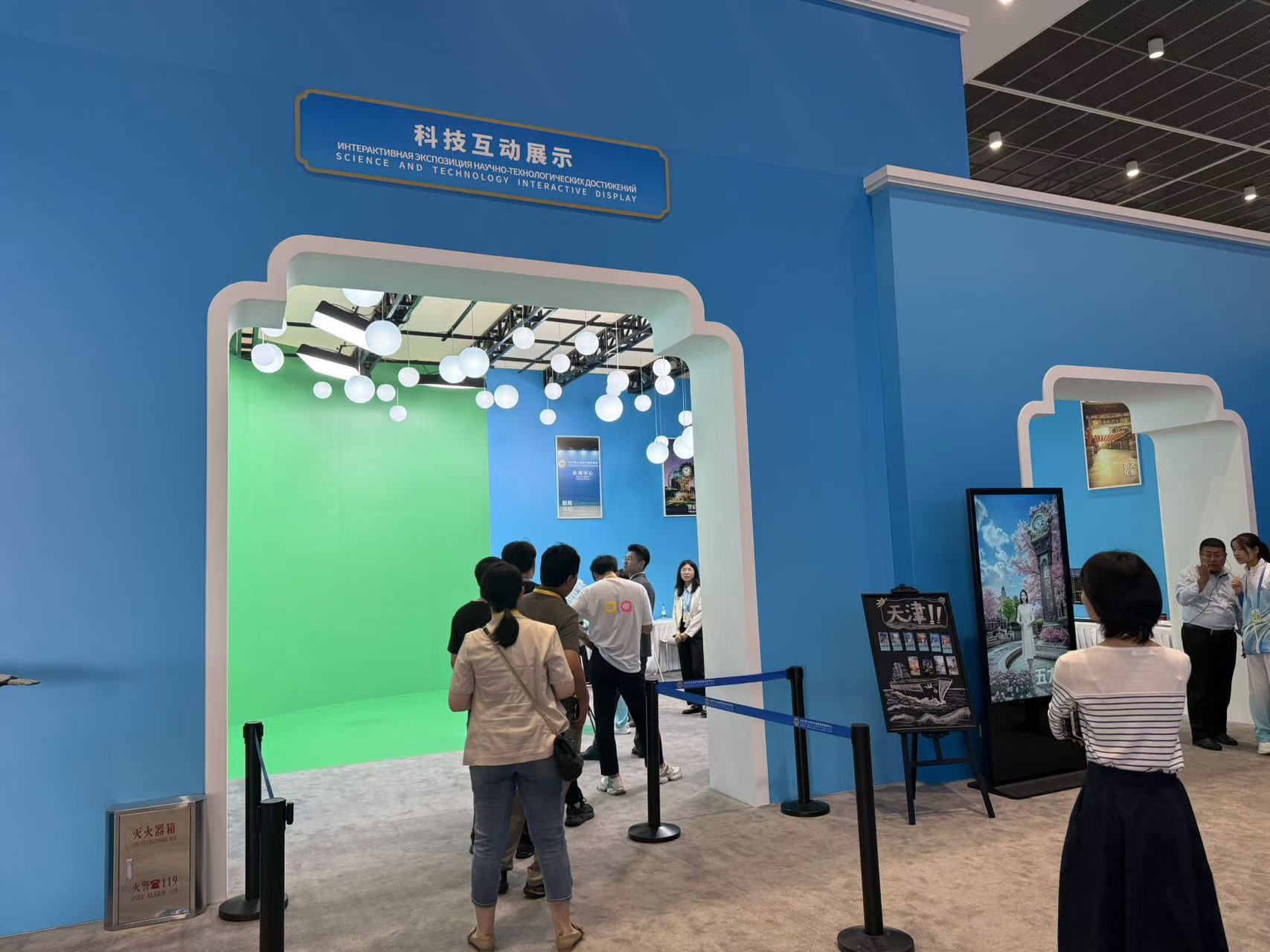 新聞中心的另一個亮點是科技文化互動展示區,當中設置了「科技 + 文化」互動展示,為與會記者提供沉浸式視聽、人工智能及機械人互動、智慧生活和非遺體驗等服務,包括可以了解如何製作漆器、景泰藍和華服。而現場亦有人工智能機械人在擠雪糕和寫書法。