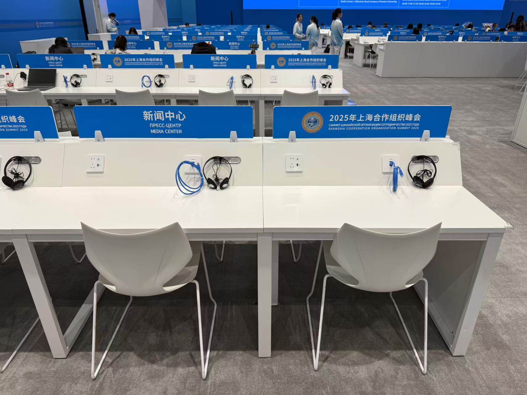 這次上合峰會是中國第五次舉辦峰會,有多國領導人出席,而峰會的新聞中心設在梅江會展中心二期,由綜合服務區、媒體公共工作區、媒體專用工作區、新聞發布區、廣播電視技術服務區、科技文化互動展示區、媒體餐飲與茶歇區等功能區組成。