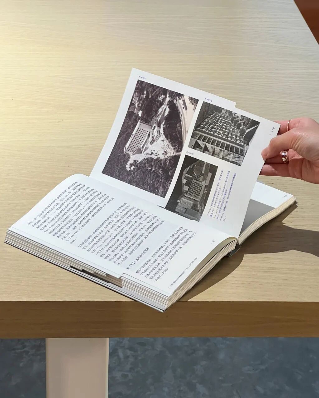 本書圖像數量極多,而且尺寸參差不齊,包括來自世界各地機構與建築師家屬所得的歷史照片、圖則、渲染圖、手繪圖等,以及研究團隊仔細爬梳後所整理的時序表和立體模型圖——但這樣反而成為一種靈感:封面設計以書中各類相片的幾何比例為元素,巧妙融合壓凹工藝,以呼應本書以圖像追溯歷史的想法,打造出層次分明的視覺語言。
