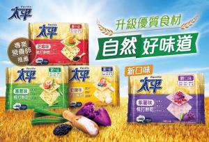 除了有「紫薯味梳打餅乾」,太平梳打餅乾另外加推3款升級版口味梳打餅乾,包括「奶鹽味梳打餅乾」、「香蔥味梳打餅乾」及「芝麻味梳打餅乾」。升級版梳打餅乾以鮮酵母發酵,帶來全麥風味。