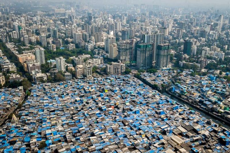 左面是印度孟買的達拉維貧民窟(Dharavi Slum),世界最大的貧民窟 圖:Johnny Miller