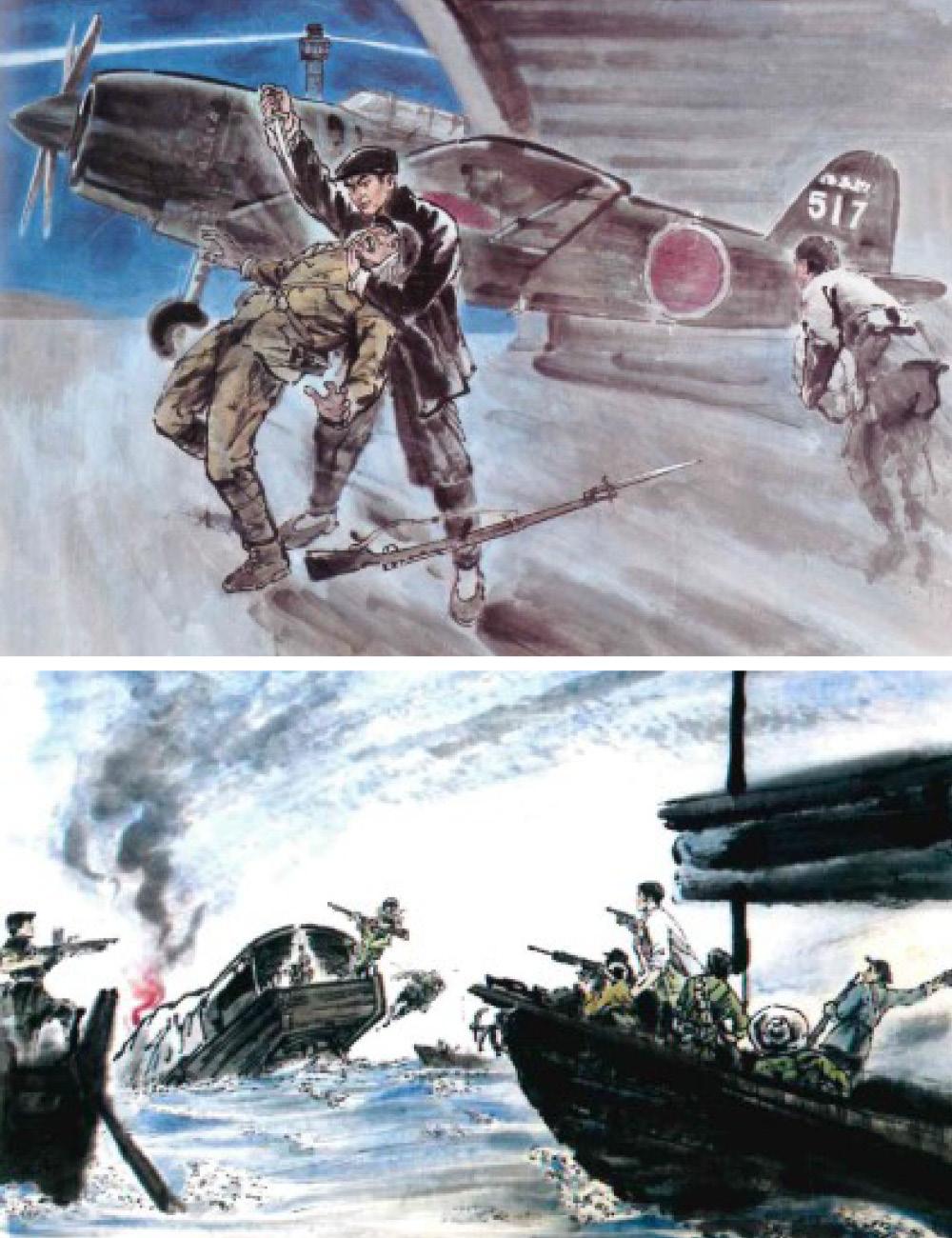 圖為描繪東江縱隊港九獨立大隊抗日行動的畫作(陳挺通畫作,由原東江縱隊港九獨立大隊老游擊戰士聯誼會提供)