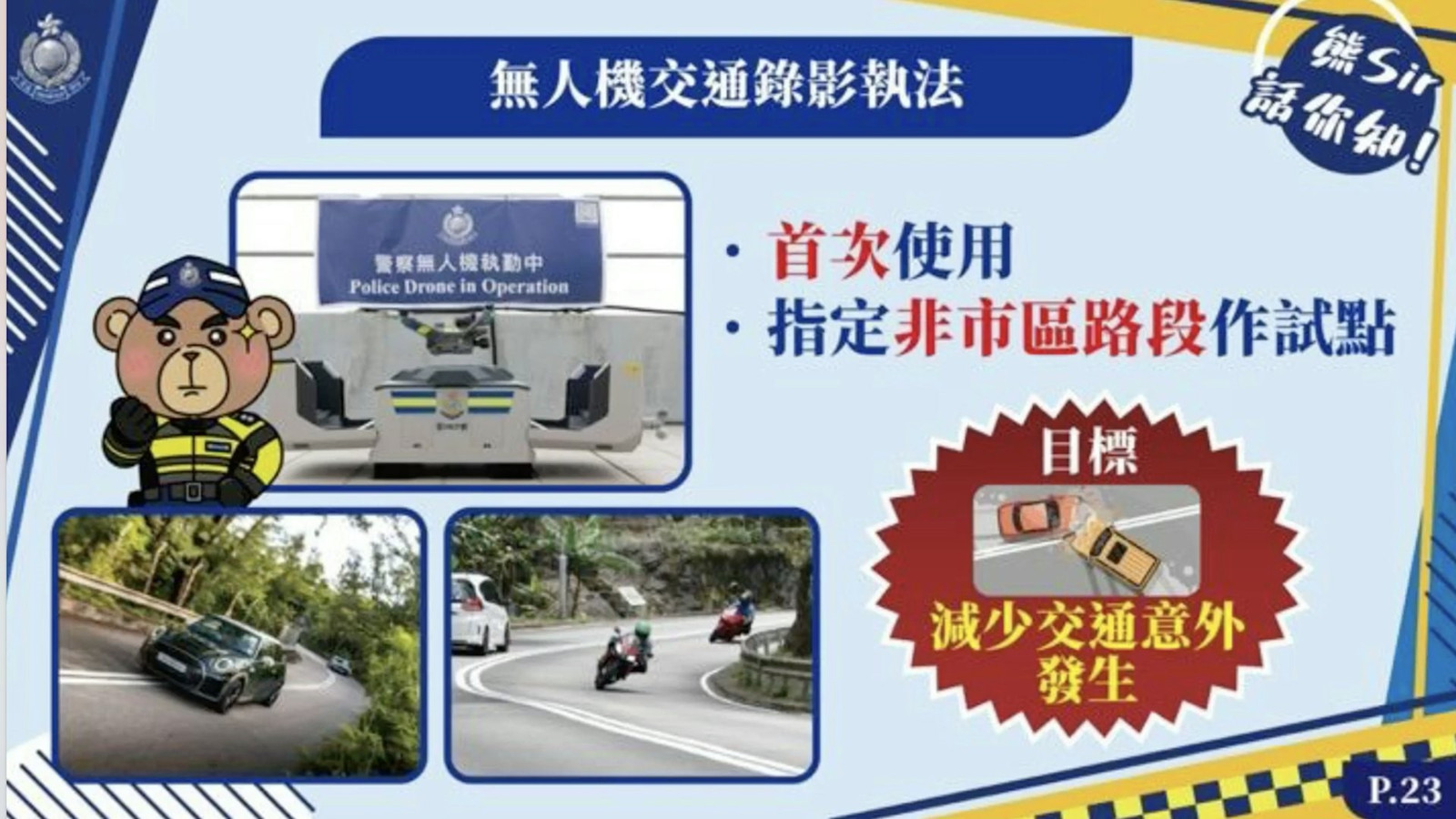 警方稱,警方會使用無人機在該兩路段,進行高空定點蒐證,無人機覆蓋範圍廣闊,亦可以突破地形的限制。而無人機執法地點附近會設置告示通知公眾,在搜集資料上會遵守《個人資料(私隱)條例》,執法以透明及公開原則進行。警方會記錄車牌,確認違例行為及司機身份後,發出定額罰款通知書或傳票。
