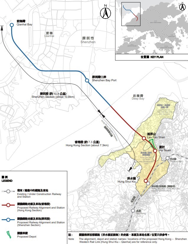 【橙訊】運輸及物流局與路政署今日(5日)就港深西部鐵路(洪水橋至前海)香港段邀請有興趣參與項目的業界提交意向書,以收集市場意見。