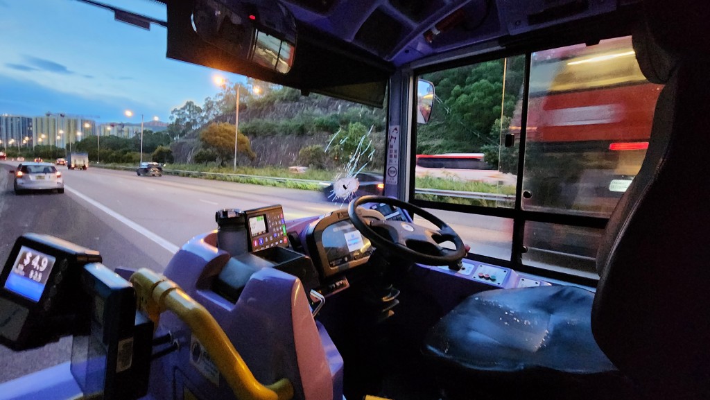 事發在今日下午近6時,涉事的967線城巴當時滿載乘客,沿大欖隧道駛往元朗方向,當城巴駛出隧道離開轉車站,至近港鐵錦上路站對開時,突有一支鐵通飛來,擊穿城巴的擋風玻璃後,插向66歲姓羅車長的左胸,他感到疼痛,幸好沒有被鐵通刺穿身體。