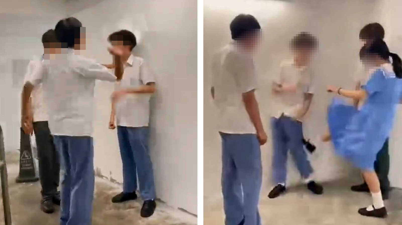 【橙訊】粉嶺發生校園欺凌事件,近日網上流傳影片,可見一名身穿校服男學生在一商場後樓梯被2男1女學圍毆,至少遭掌摑8巴,據報道涉事學生來自粉嶺一間中學,事件涉及「爭女」和勒索。警方調查後早前已先後拘捕4名學生。