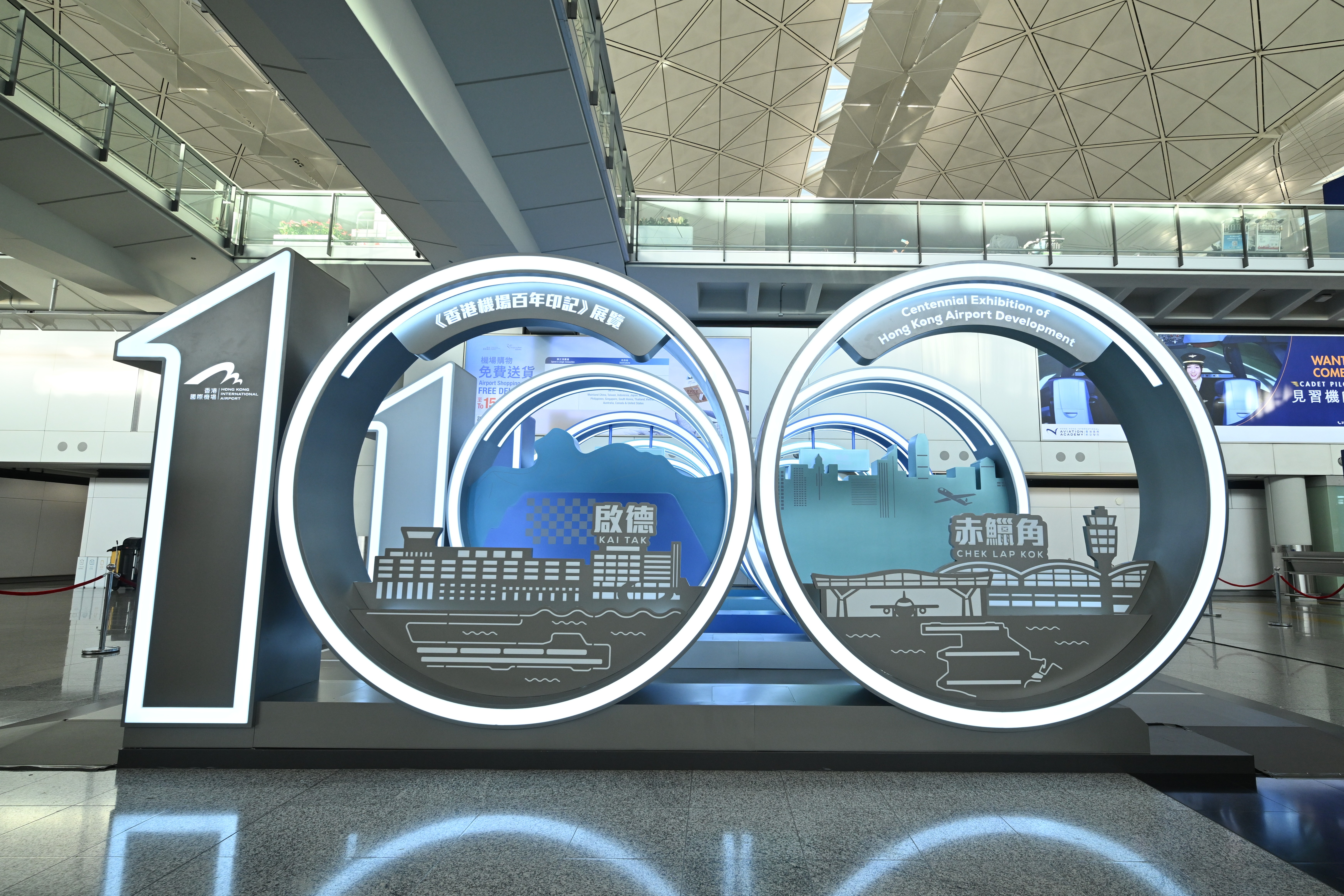 機管局由今日起在香港國際機場接機大堂展出「香港機場百年印記」展覽。