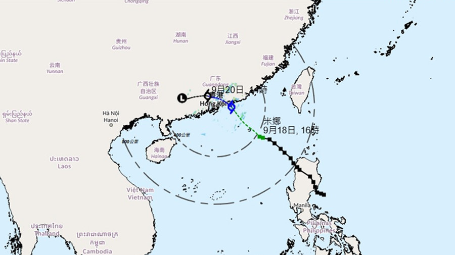 天文台會視乎米娜的強度、其持續強風區與本港的距離及本地風力變化,評估是否需要在明日日間改發更高熱帶氣旋警告信號。米娜的外圍雨帶正影響廣東沿岸。預料明日驟雨逐漸增多,星期六間中有狂風驟雨及雷暴,雨勢有時頗大,海有湧浪。市民請遠離岸邊及停止所有水上活動。