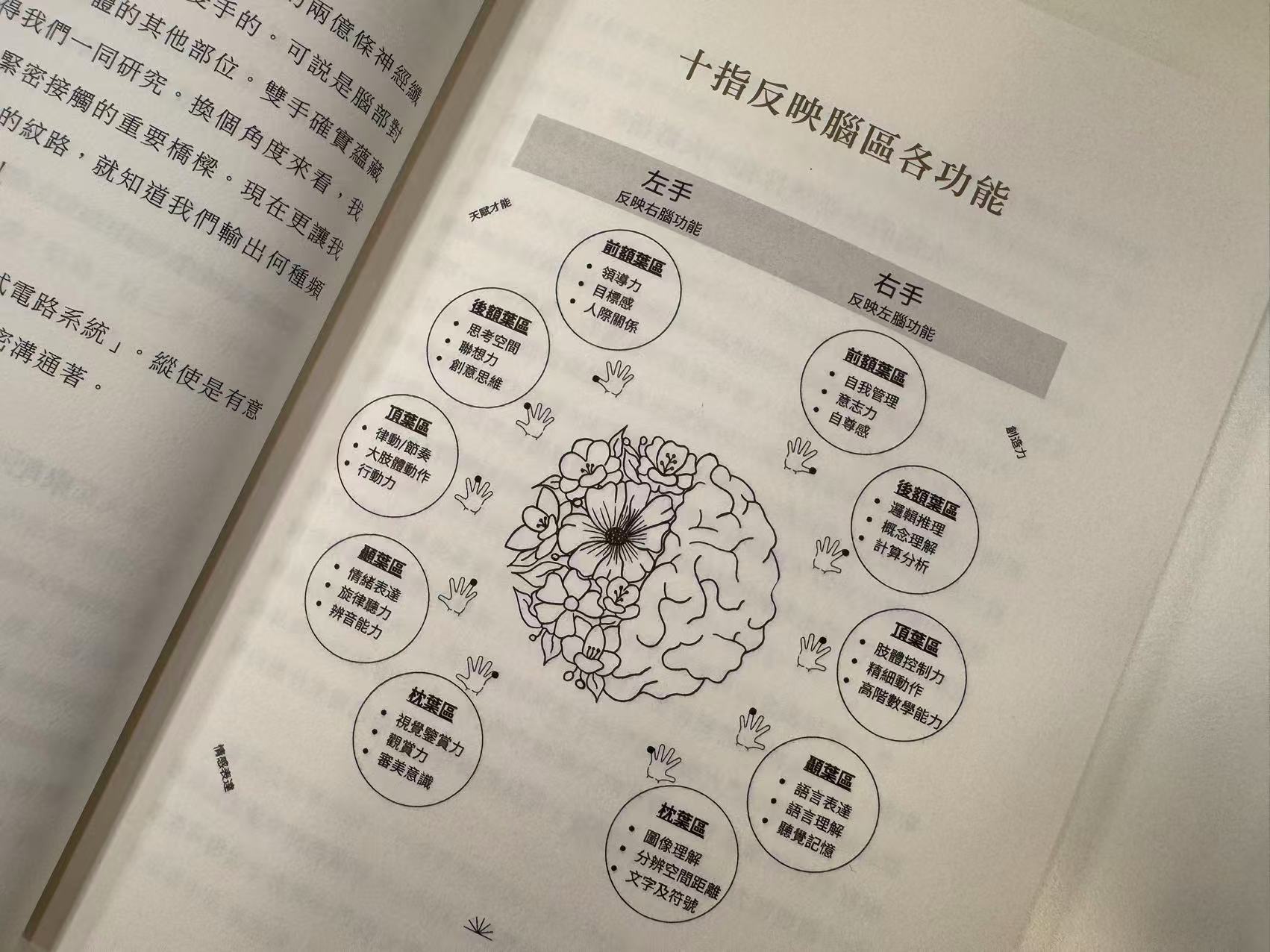 單看指紋類型的數量還不夠,因為十指分別反映了腦區各功能,從大拇指到小拇指分別代表前額葉區、後額葉區、頂葉區、顳葉區和枕葉區的功能,所以不同的指紋長在不同的手指,又會疊加出不同的效果,看指紋也是一門複雜的學問。