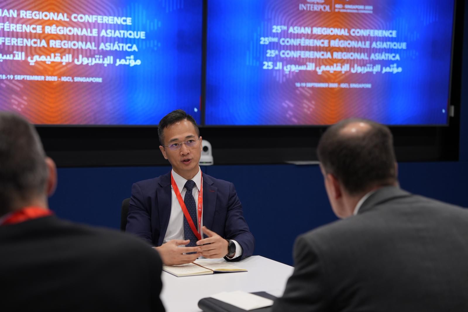 【橙訊】警務處高級助理處長、刑事及保安處處長陳東率領香港警隊代表團於9月17日至18日出席在新加坡國際刑警組織全球創新中心舉行的「第25屆國際刑警組織亞洲區會議」。本次會議是國際刑警組織重要的地區會議,成員國的高級警務人員代表在每兩年一度的會議中,共同探討亞洲地區打擊跨國有組織犯罪的執法行動、國際警務合作和策略。今年匯聚來自49個國家及地區的165名代表出席。是次會議聚焦三大核心議題,包括「亞洲區首要行動項目及利用可信數據應對詐騙活動」、「國際合作以追捕逃犯及打擊數碼時代下的人口販運、虐待兒童及網絡犯罪」和「亞洲多邊協作及數碼警政」。