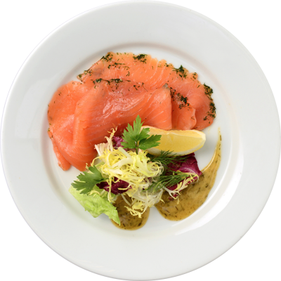 「香草醃三文魚沙律」(外賣自取$ 28;堂食價$33)。