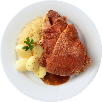 德國風情「酥炸咸豬手伴酸椰菜及薯仔配茴香蒜蓉汁」(外賣自取$56.1;堂食價$66)。