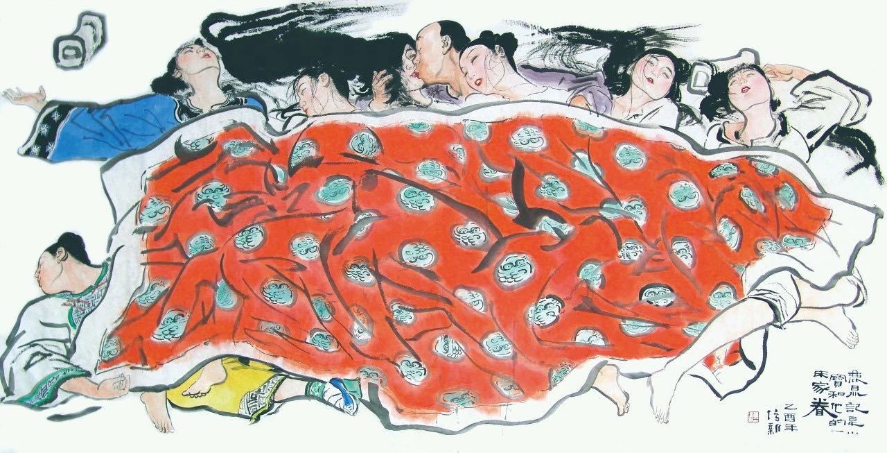 我給自己一個難題,嘗試玩一下。我很欣賞女性的手和腿,這兩樣東西也很難繪畫。八個人怎樣交疊,把被鋪拿走,你就能看到各人的姿態,很好玩。