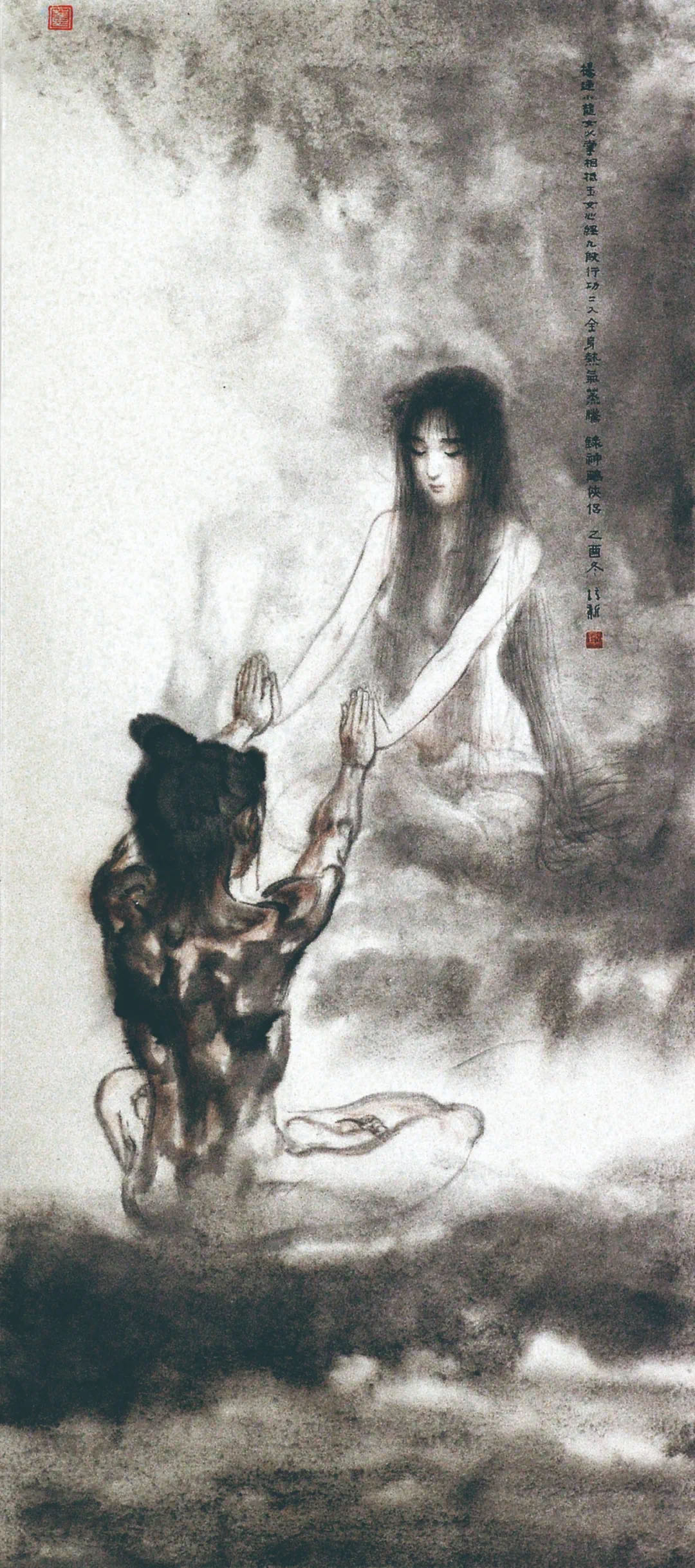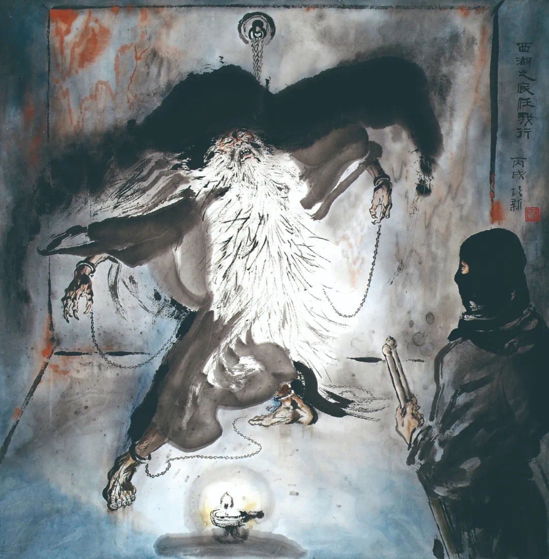 小龍女和楊過在古墓外練《玉女心經》以及任我行困於西湖之底,這兩幅畫是金庸先生的收藏。