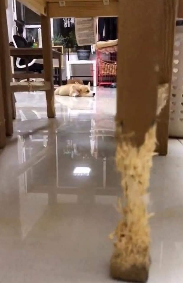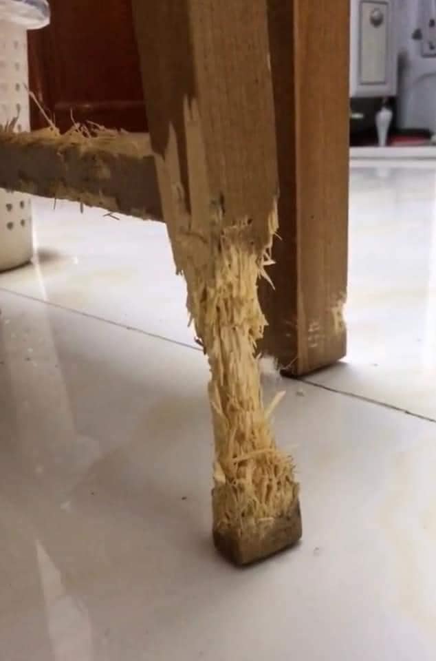 【橙訊】木製家具美觀又實用,天氣潮濕時卻會招來白蟻或蛀蟲,教人非常頭痕。近日有網民分享家中的枱腳大幅度磨蝕,你以為是受到白蟻蛀蝕?原來真正的「兇手」是一隻哥基犬!