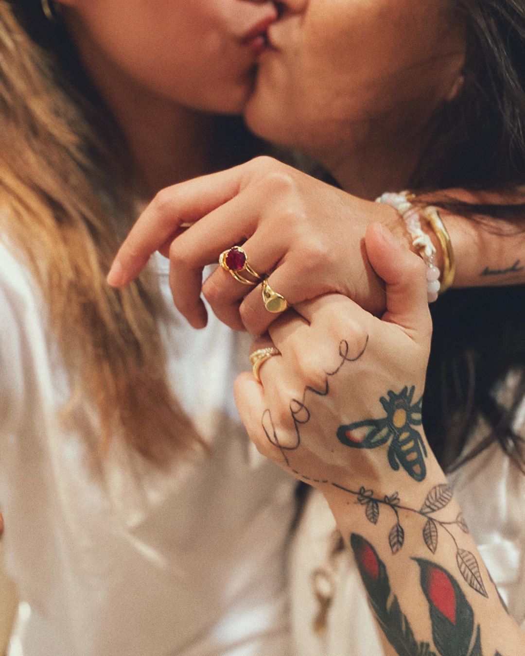 Kayla與Elaine於社交網晒出二人咀嘴的合照,當中焦點落在她們無名指上的戒指,而Kayla留言:「you and me until the end of time.(你跟我直至時間終結)」Elaine則表示:「Forever yours. Officially.(永遠屬於你)」相當甜蜜!
