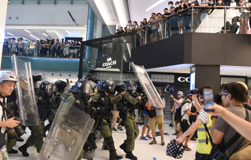 去年7月14日,沙田新城市廣場爆發示威衝突。資料圖